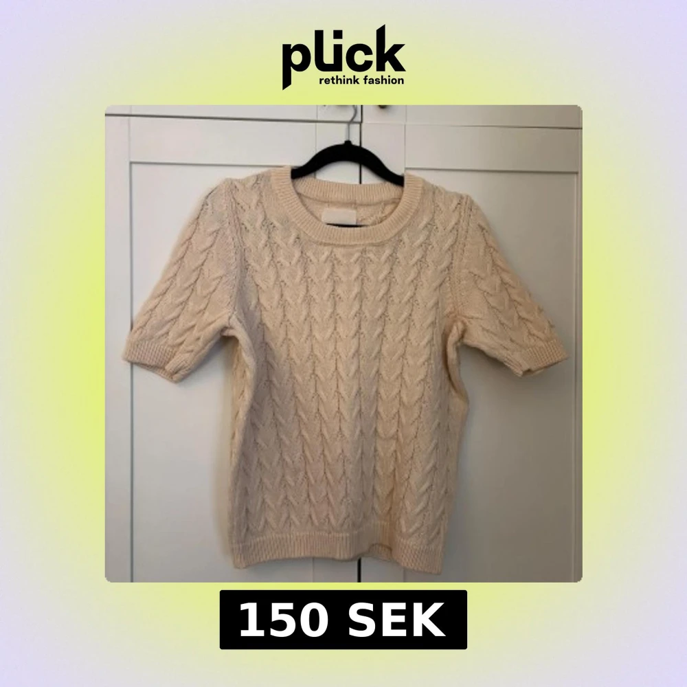 Säljer en beige stickad tröja från Part Two i storlek XS. Tröjan har korta ärmar och ett klassiskt kabelstickat mönster. Perfekt för lager-på-lager och passar till många olika stilar. Supermjuk och skön att bära!