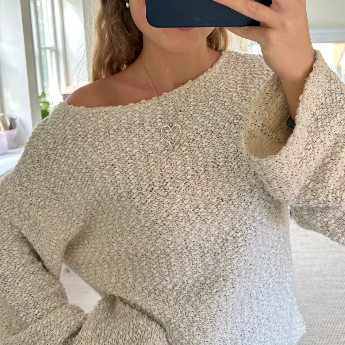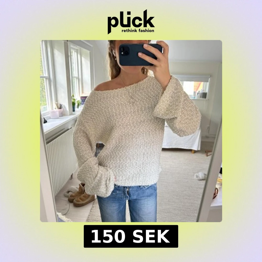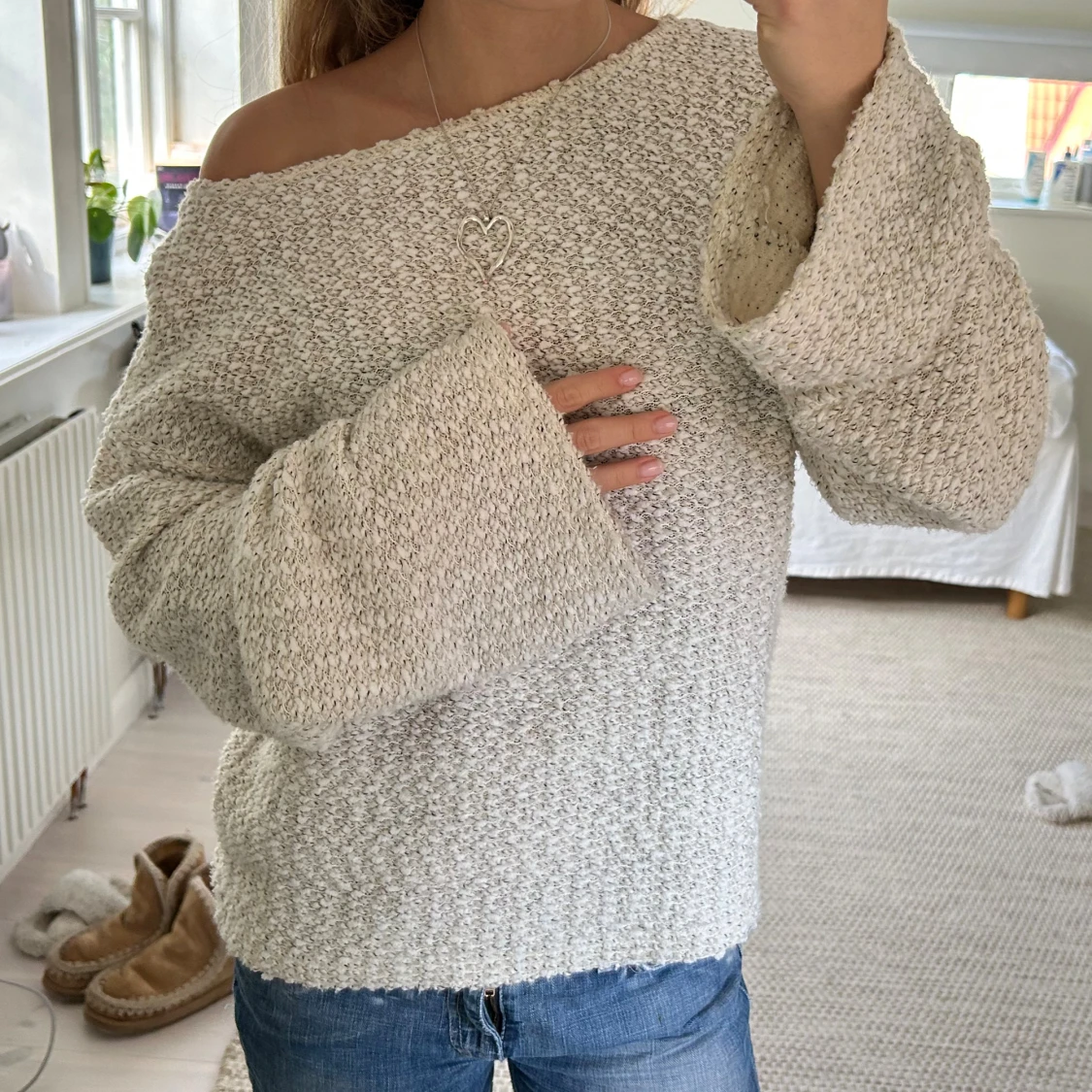 Supermysig vit/beige stickad tröja med breda ärmar och offshoulder-modell. Från H&M i storlek S💗