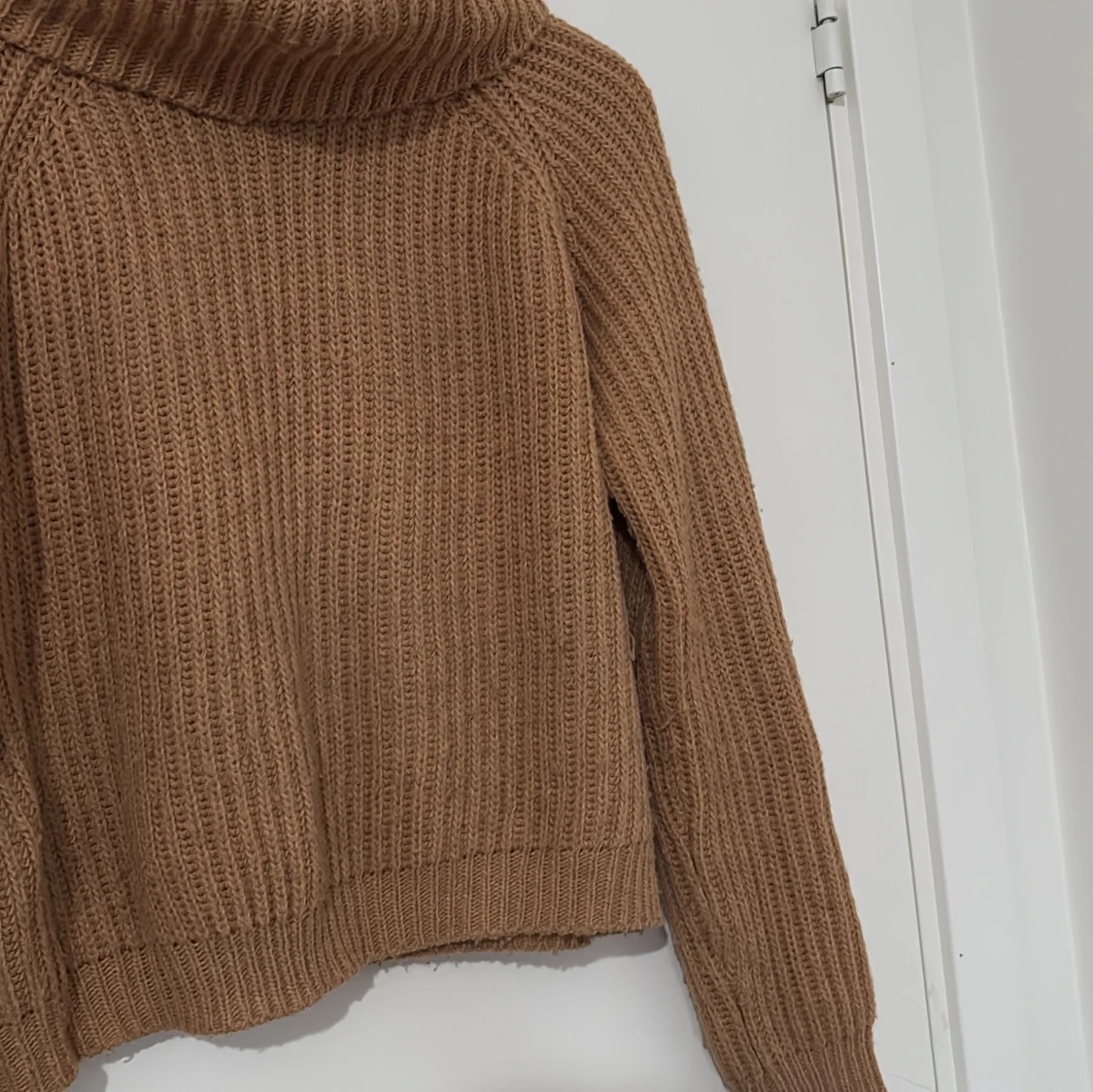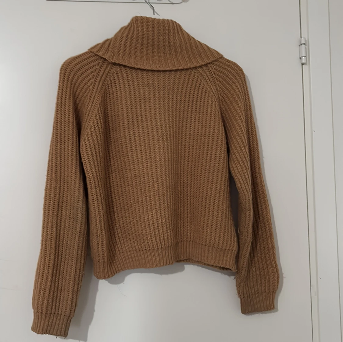 Mysig beige stickad polotröja med grov ribbstickning och hög krage. Tröjan har lång ärm och avslappnad passform, perfekt för kyliga dagar. Enkel att matcha med jeans eller kjol för en chill look.