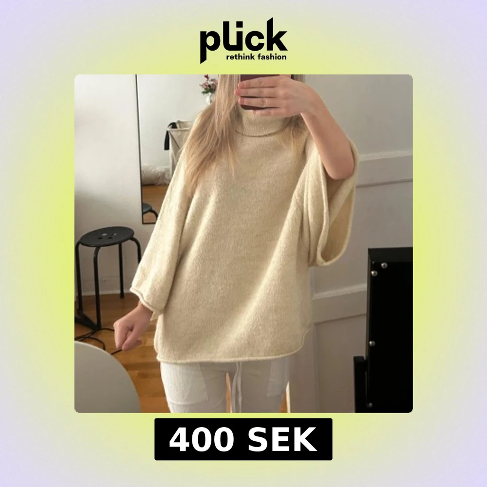 Säljer en mysig beige stickad poncho med polokrage. Perfekt för kyliga dagar och ger en avslappnad look. Den har vida ärmar och en lös passform som gör den bekväm att bära. Passar bra till jeans eller leggings. Slutsåld på hemsidan.