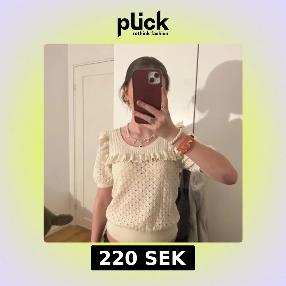 Säljer en söt beige stickad topp från & Other Stories. Toppen har korta ärmar och volangdetaljer vid halsringningen. Perfekt för en stilren look med en touch av romantik. 💫
