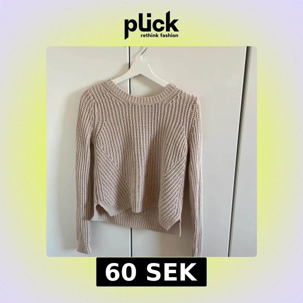 Säljer en stilren beige stickad tröja med rund hals och långa ärmar. Perfekt för kyligare dagar och enkel att matcha med olika outfits. Tröjan har en ribbad struktur som ger en fin textur och extra värme.