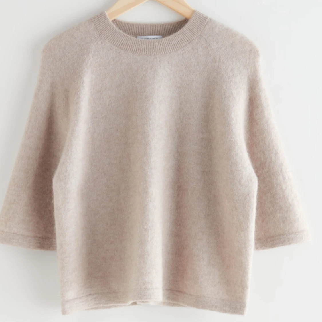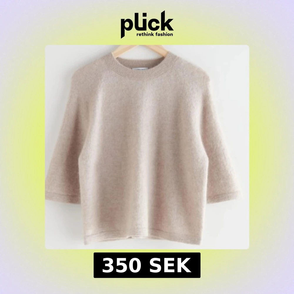 Beige stickad tröja med trekvartsärm som ej kommer till användning💞💞