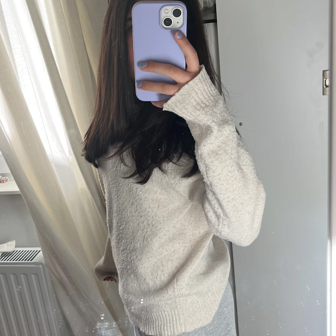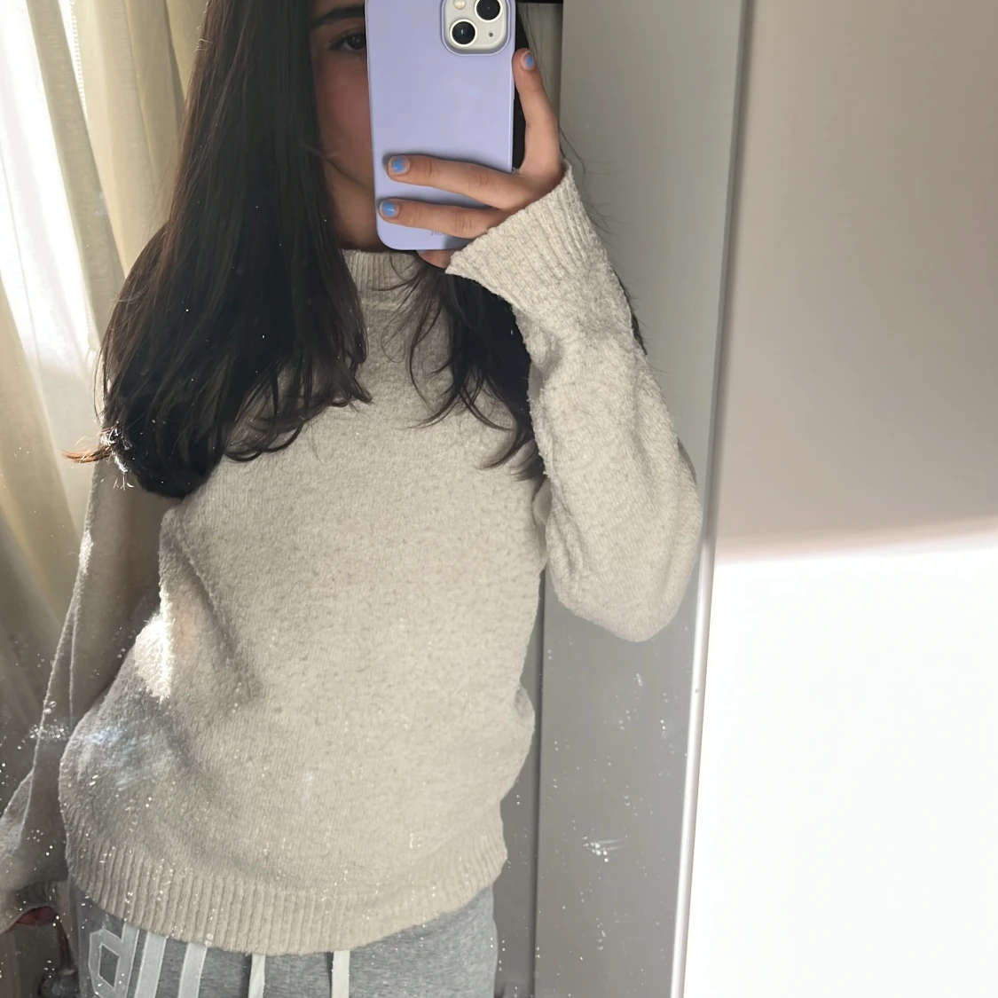 Mysig beige stickad tröja med rund hals och långa ärmar. dm för frågor