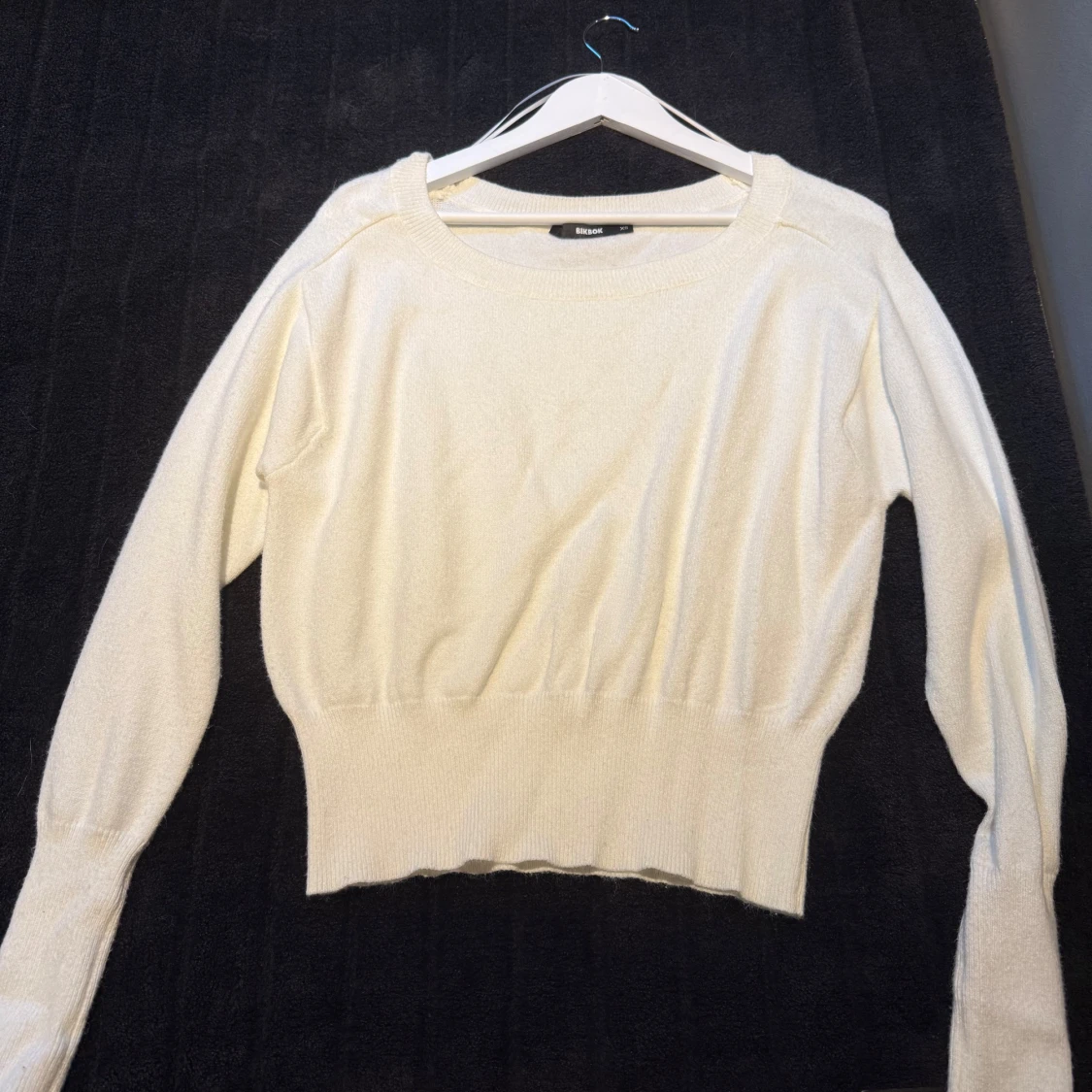 Supermjuk beige stickad off shoulder tröja från bikbok, endast använd en gång. Skriv mer bilder💕
