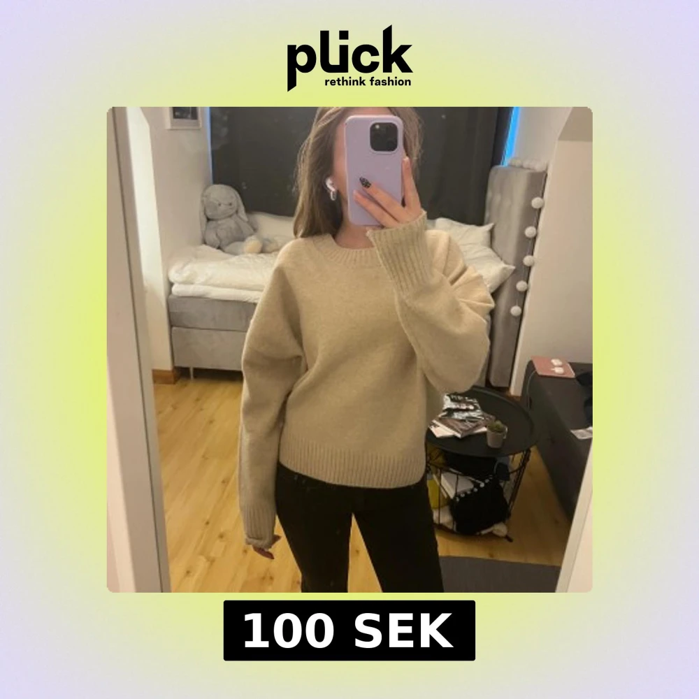 Säljer en beige stickad tröja från Zara i storlek S. Syns att den har används. Perfekt för hösten!