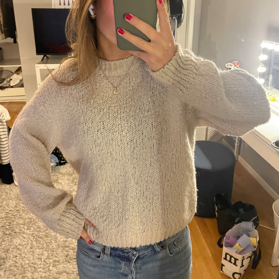 Mysig beige stickad tröja perfekt till hösten!!🥰