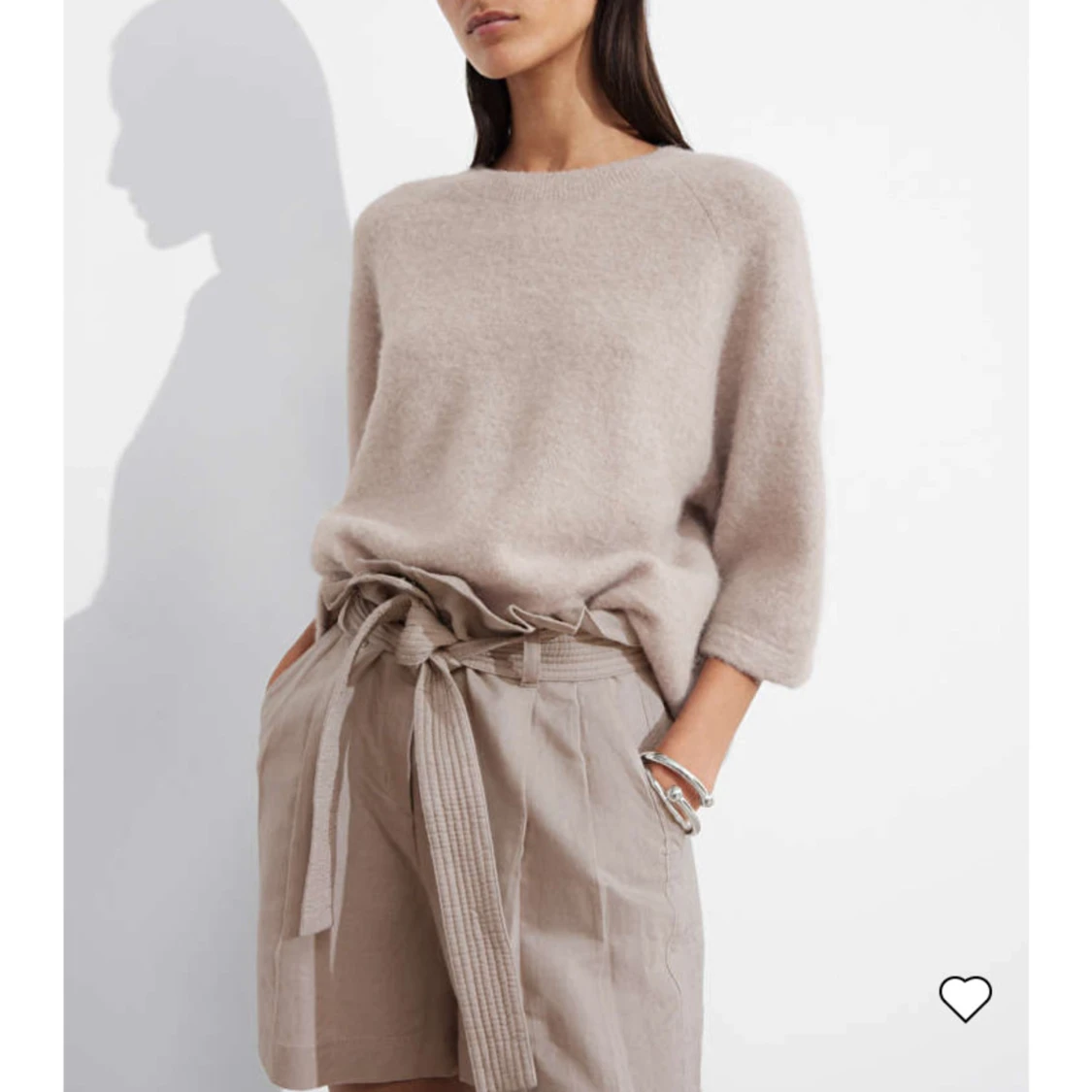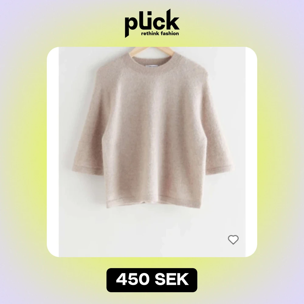 En mjuk och bekväm beige stickad tröja med trekvartsärm. Tröjan har en rund halsringning och en lös passform, vilket gör den perfekt för både vardag och avslappnade tillfällen.