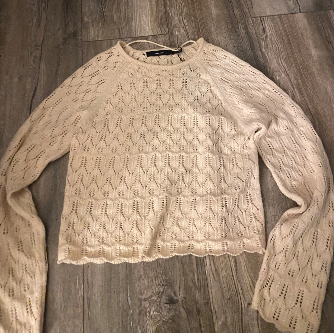 Säljer en superfin beige stickad tröja från Vero Moda. Den har ett jätte fint hålmönster och långa ärmar. Tröjan är i nytt skick! Pris kan diskuteras och skriv för frågor!🥰