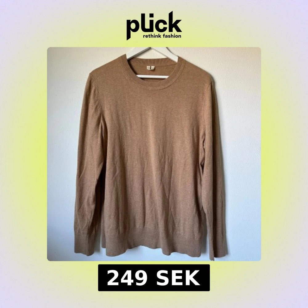 Snygg beige stickad tröja från Arket i storlek M. Tillverkad i en mjuk mix av bomull och kashmir som känns skön mot huden. Tröjan har rund hals och långa ärmar, perfekt för lager-på-lager under hösten och vintern. 1A12