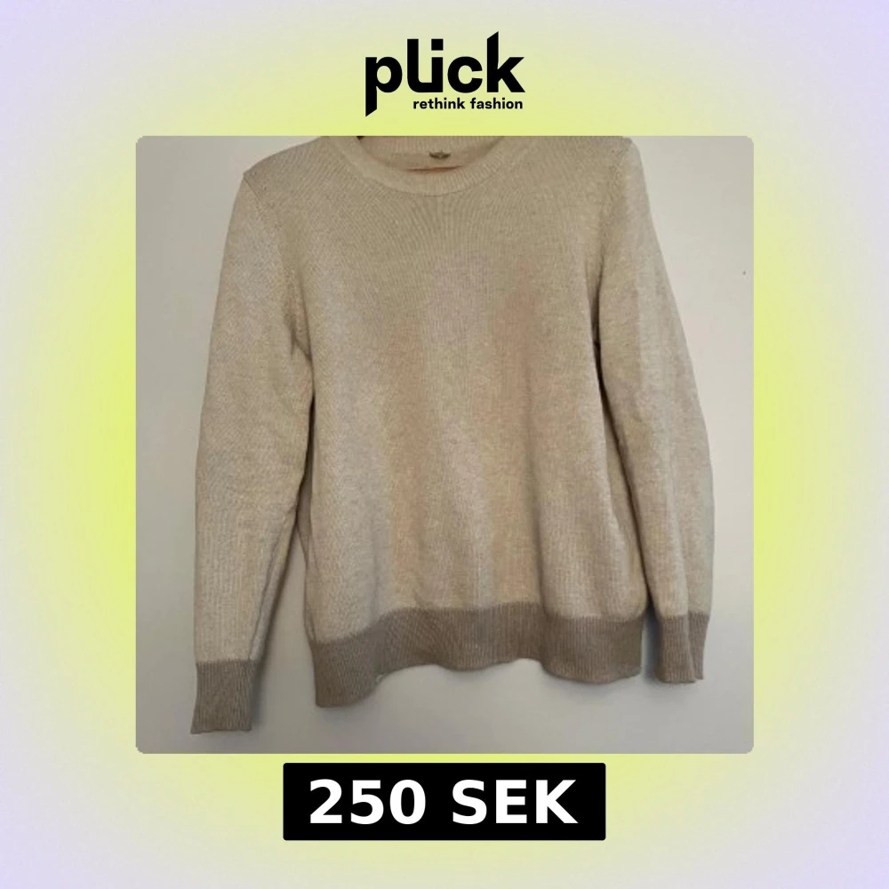 Säljer en stilren beige stickad tröja från Arket i ekologisk bomull. Tröjan har en klassisk rund hals och långa ärmar med ribbade muddar. Perfekt för en avslappnad och bekväm stil. Tröjan har inga defekter