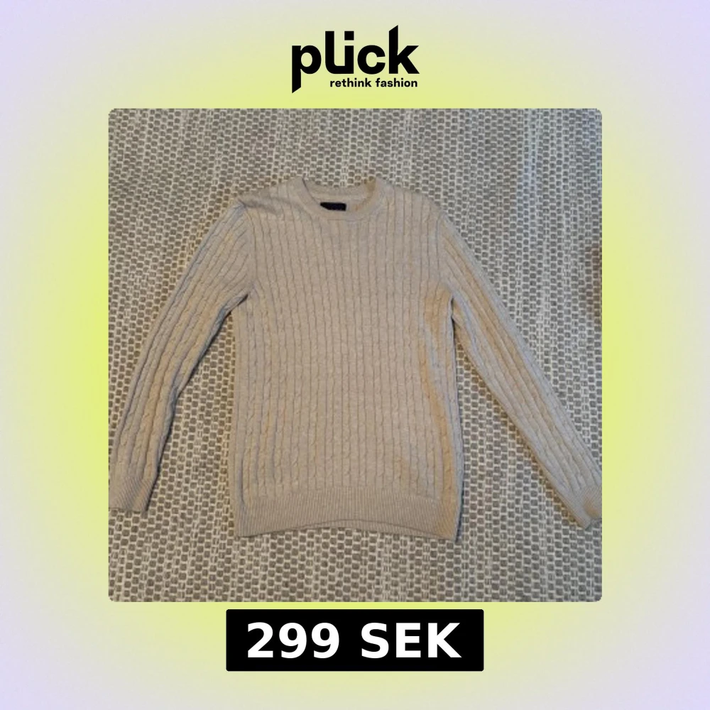 Säljer en stilren beige stickad tröja från Bondelid. Tröjan har ett klassiskt kabelstickat mönster och långa ärmar. Perfekt för kyligare dagar.