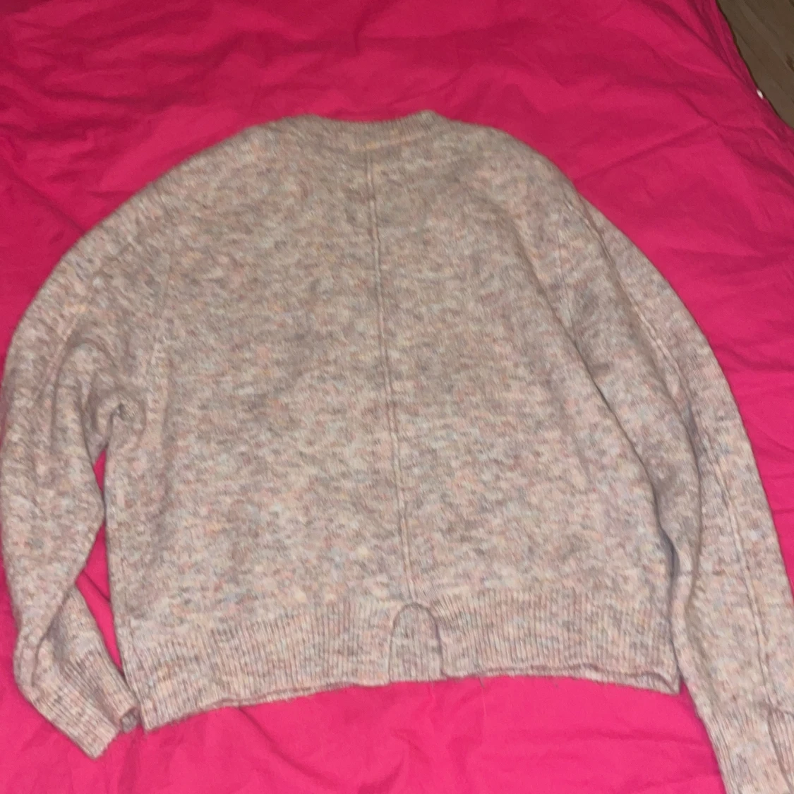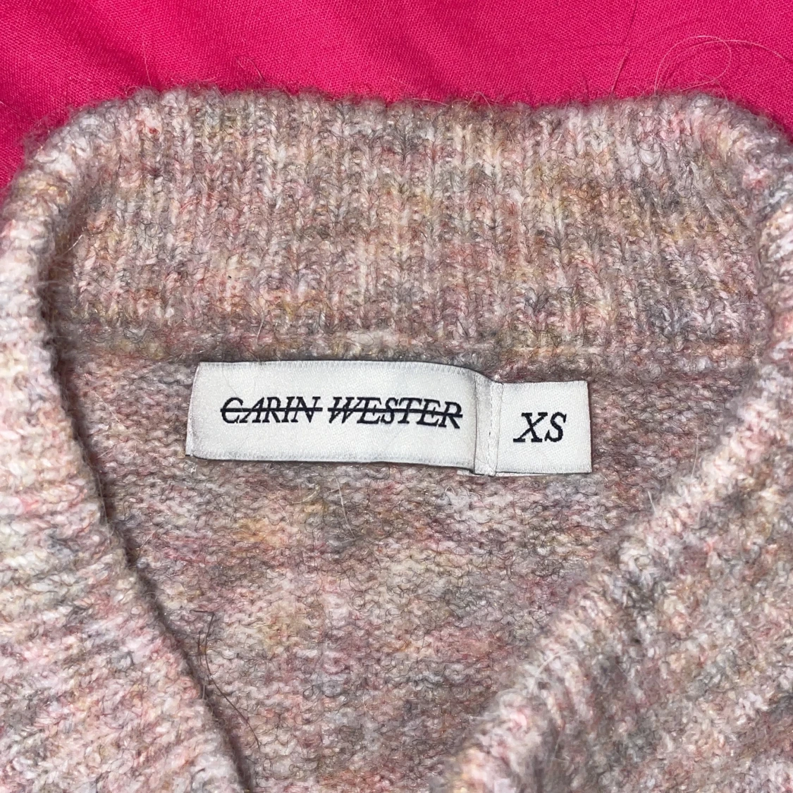 Mysig beige stickad tröja från Carin Wester i storlek XS. Perfekt för kyliga dagar med sin mjuka och varma känsla. Tröjan har långa ärmar och en klassisk rund halsringning.