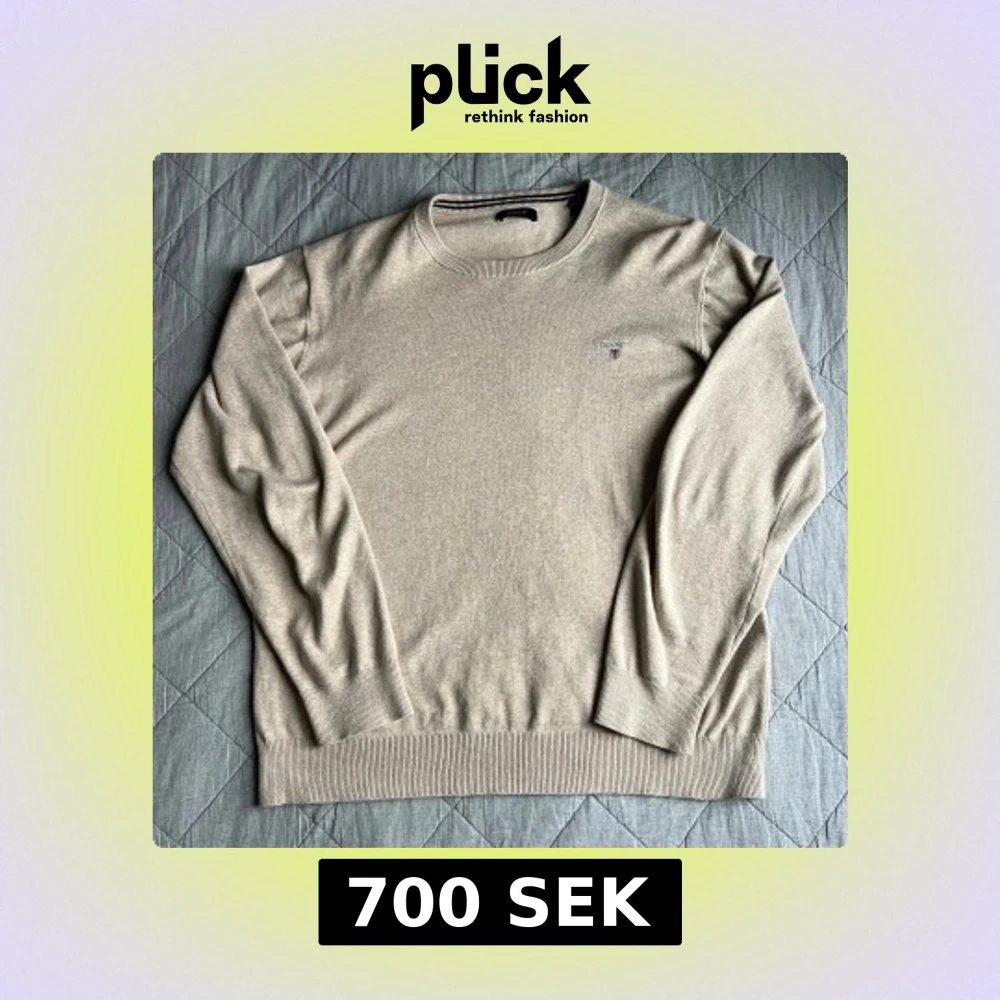 Klassisk beige stickad crewneck från GANT med diskret logga broderad på bröstet. Tröjan är i bomull, har ribbade muddar och lång ärm. Väldigt schysst.