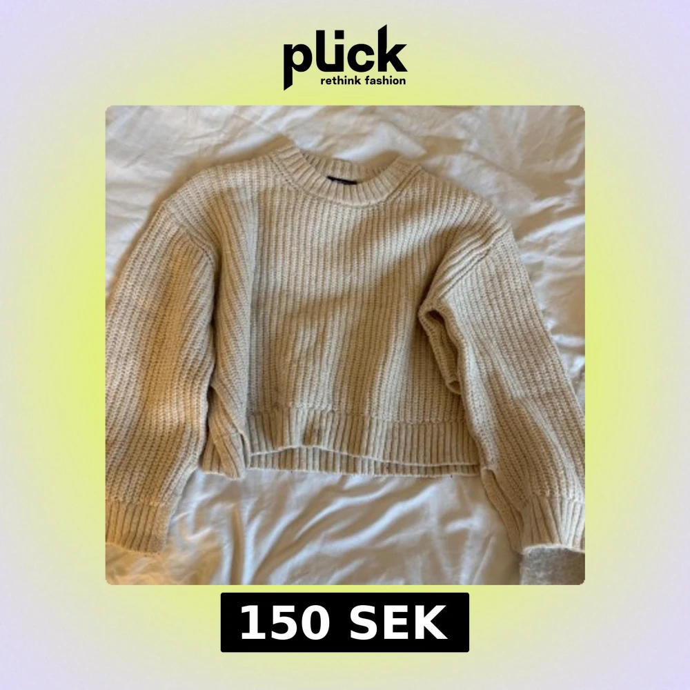 Supermysig beige stickad tröja från Gina Tricot med grov ribbad struktur och rund hals. Tröjan har långa ärmar och breda muddar vid ärmslut och nederkant. Perfekt för lager-på-lager och chill dagar. Passar dig som gillar enkel och clean stil.