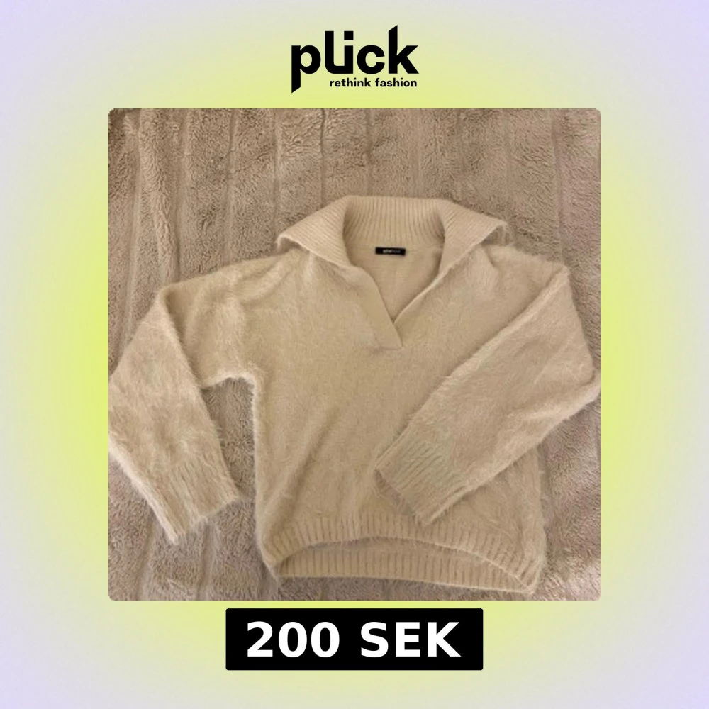 Mysig beige stickad tröja från Gina Tricot med en bred krage och långa ärmar. Perfekt för kyliga dagar med sin mjuka och bekväma design. Passar utmärkt till både jeans och kjol. Jättesöt då den är lite fluffig 💗Modellen säljs inte längre av gina 💕