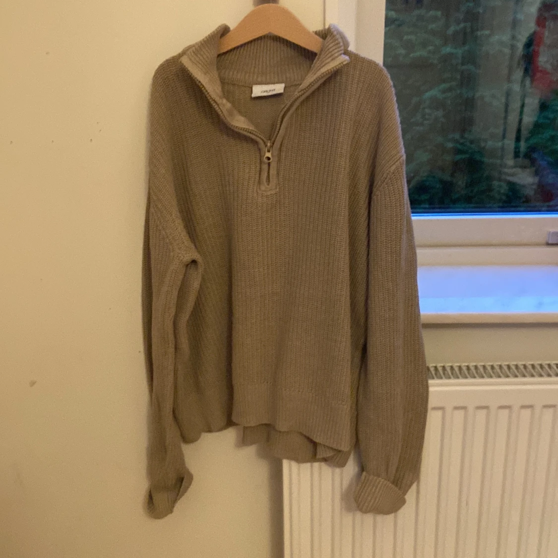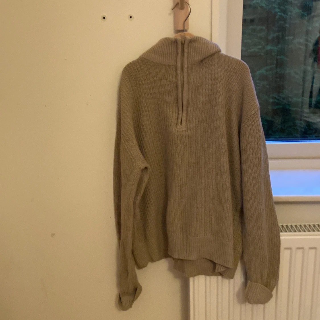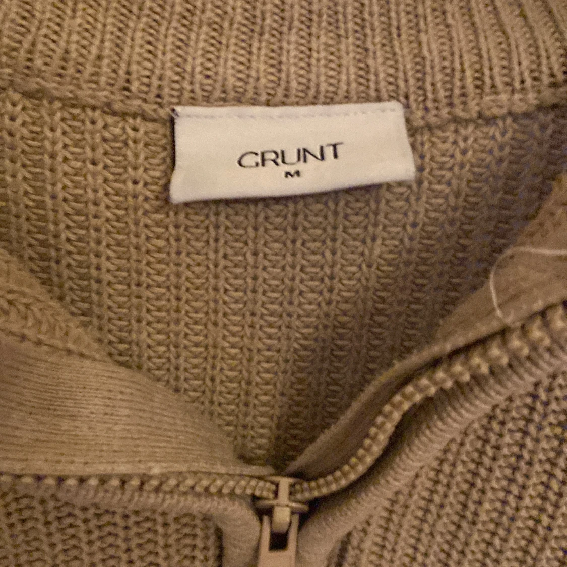 Säljer en snygg beige stickad tröja från Grunt i storlek M. Tröjan har en dragkedja vid halsen och långa ärmar, perfekt för kyliga dagar. Den är i bra skick och passar både till vardags och lite finare tillfällen. Nypris ca 750