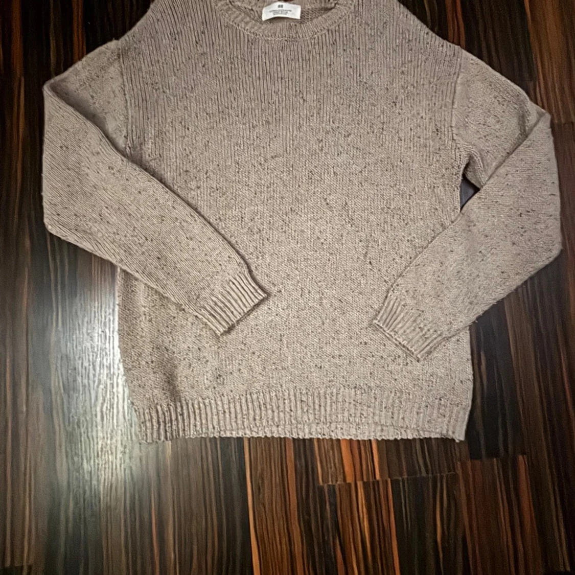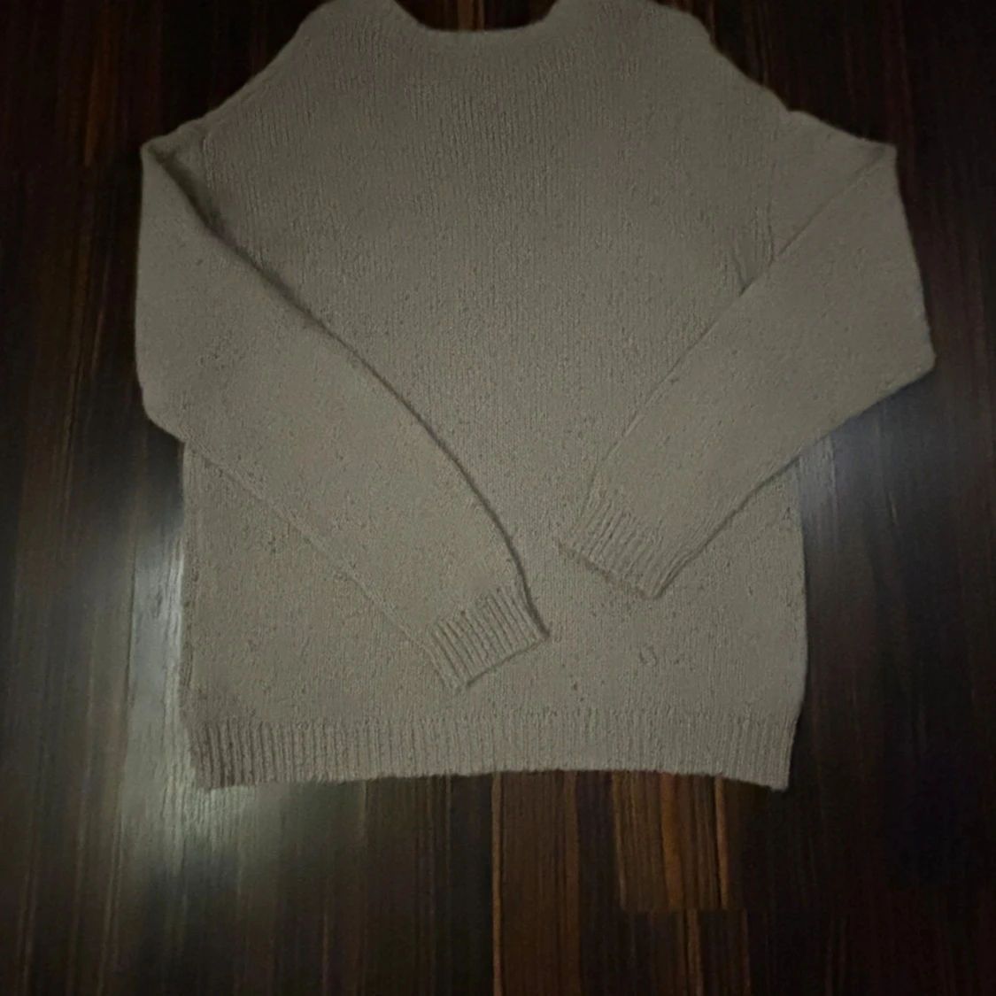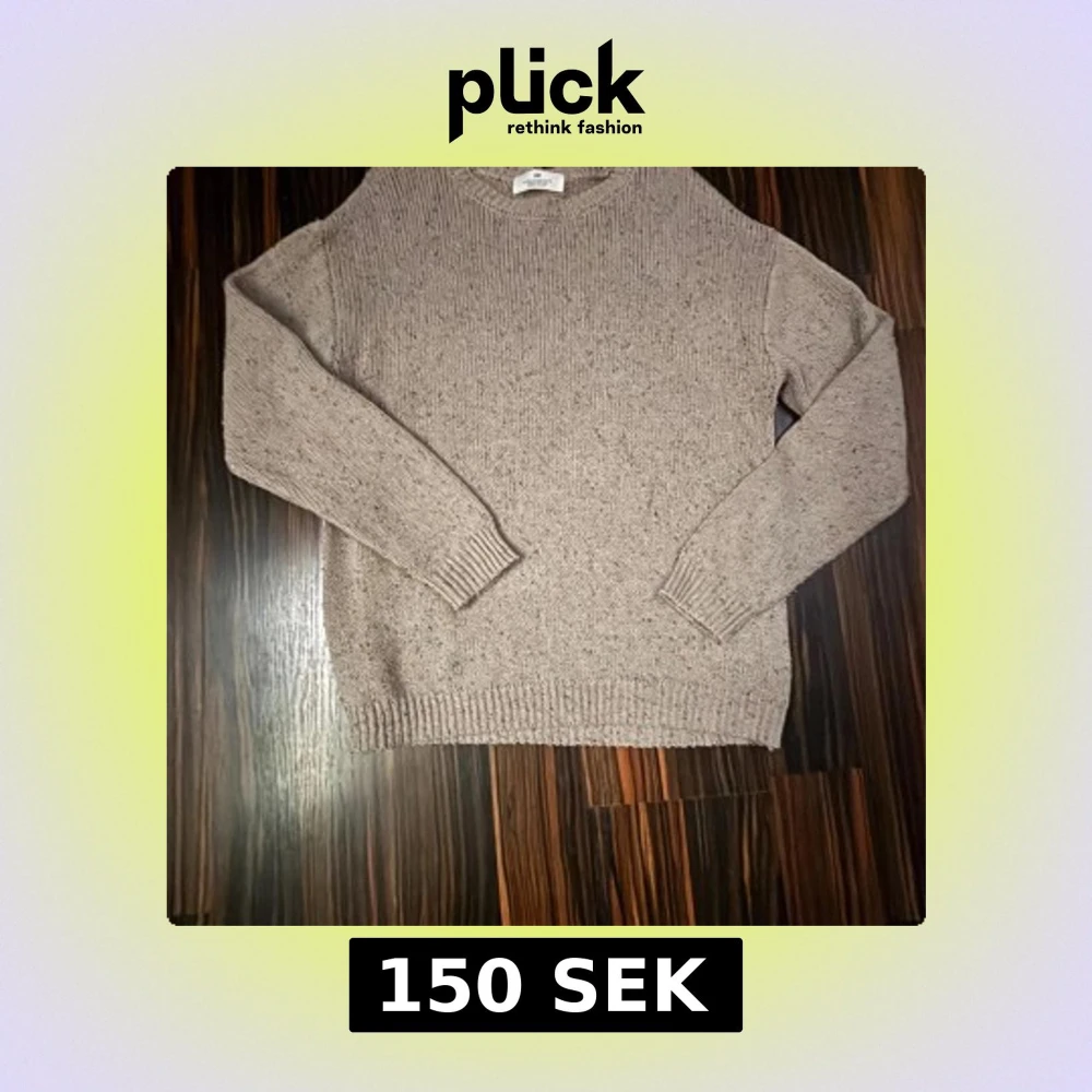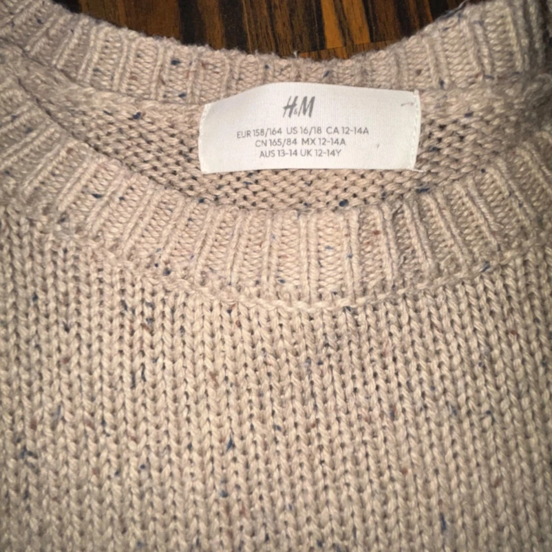 Mysig beige stickad tröja från H&M. Perfekt för kyliga dagar med sin ribbade halsringning och muddar. Enkel och stilren design som passar till det mesta. Storlek 158-164