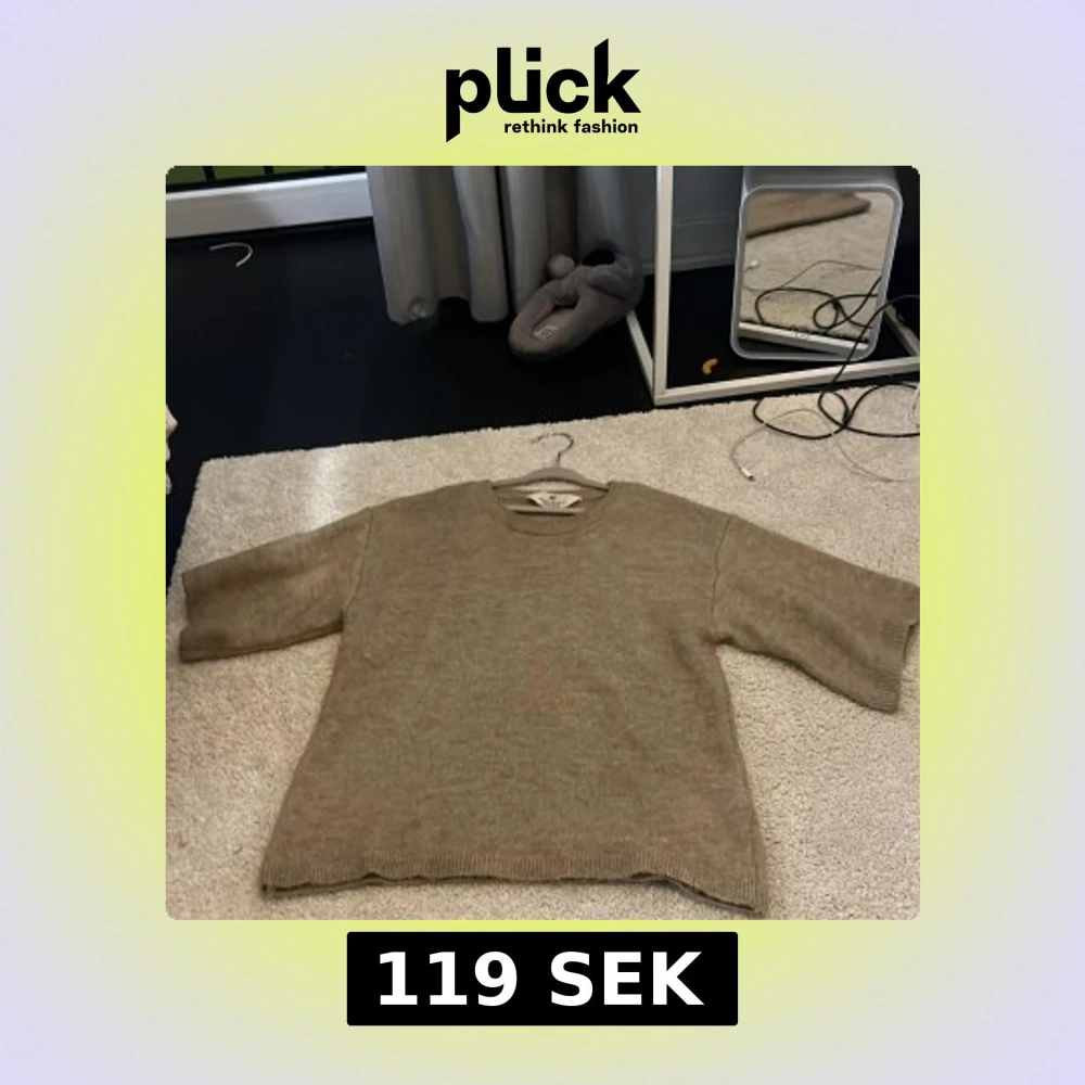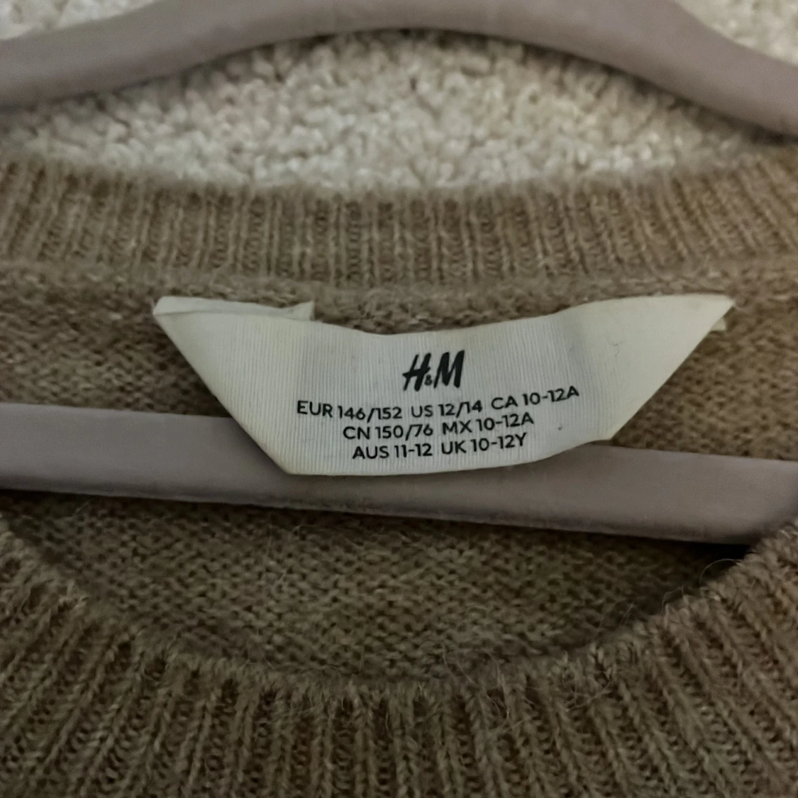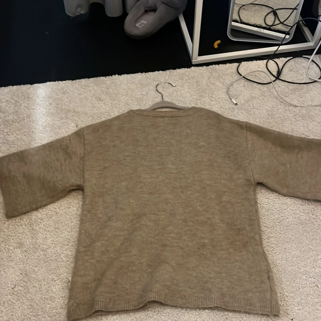 En beige stickad tröja från H&M med rund hals och trekvartsärmar. Tröjan har en loose passform och är tillverkad i mjukt stickat material som ger en chill och avslappnad vibe. Perfekt för lager-på-lager under hösten och vintern.