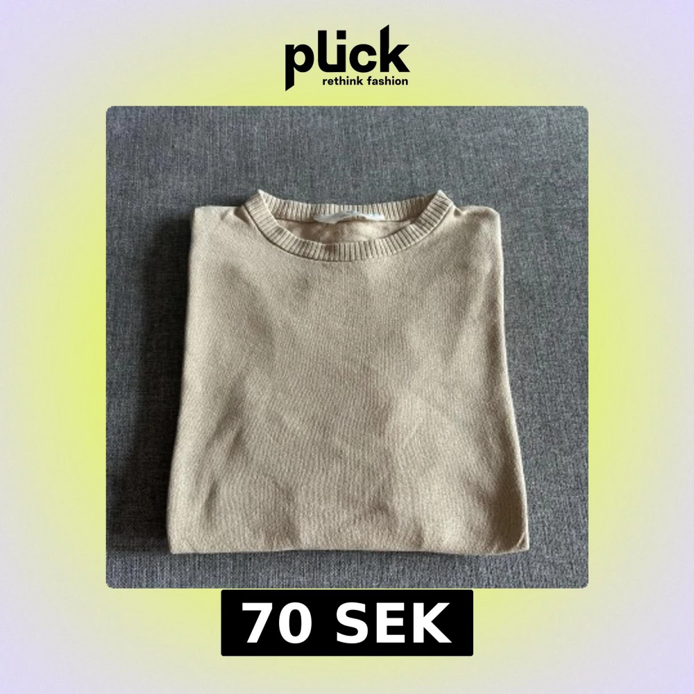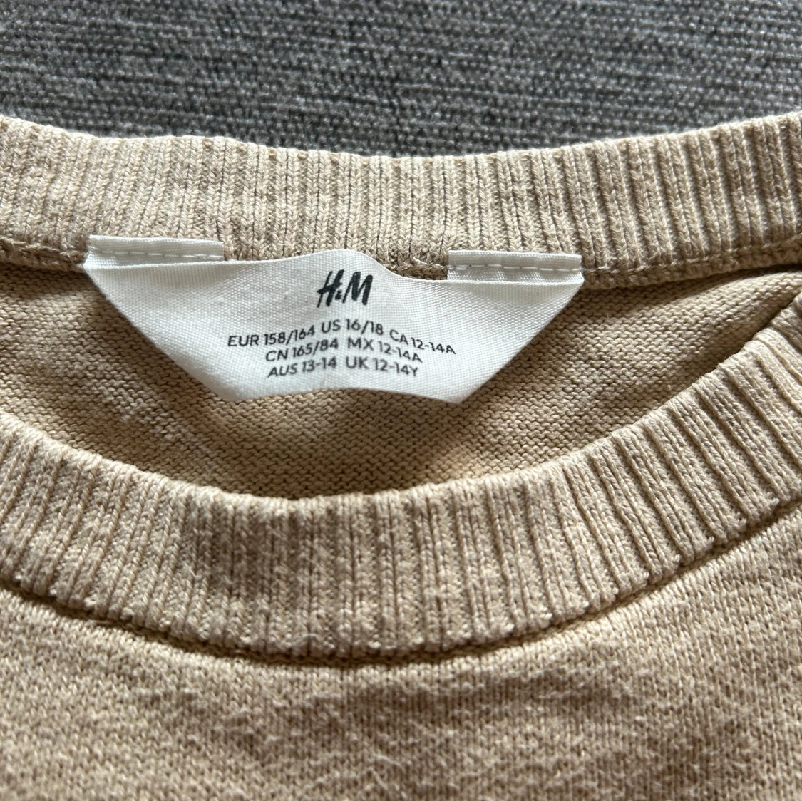 Snygg beige stickad tröja från H&M med rund halsringning och ribbade detaljer vid halsen. Perfekt för lager-på-lager och passar till allt. Enkel och stilren design som är lätt att matcha med dina favoritjeans.
