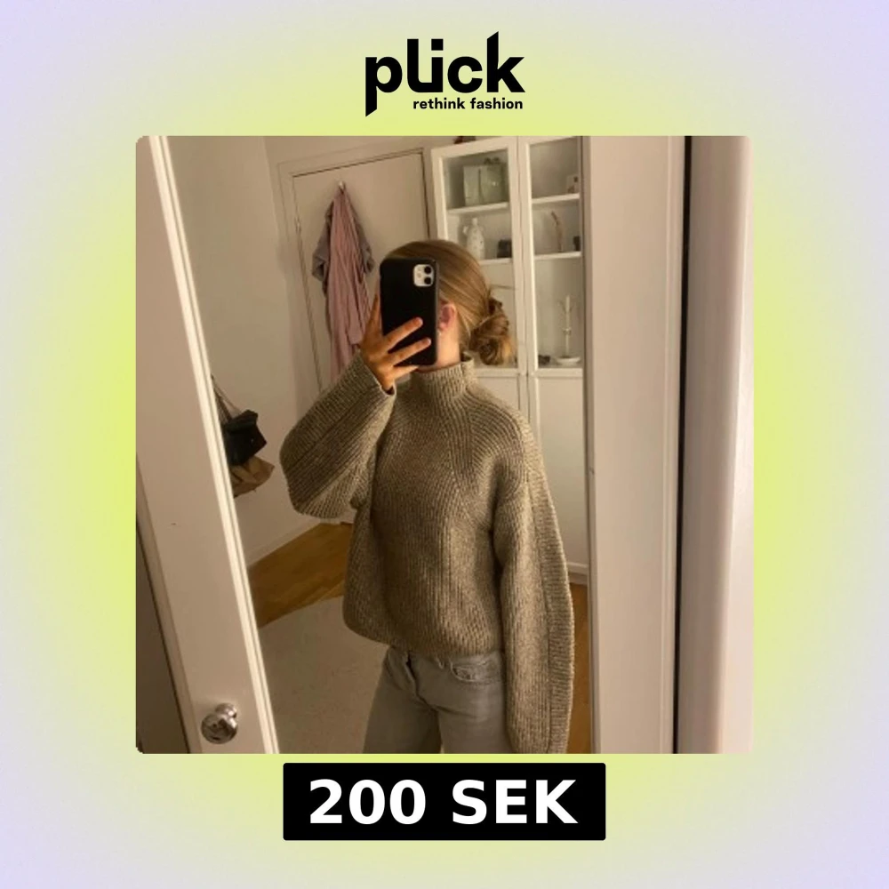 Säljer en mysig beige stickad tröja från H&M. Tröjan har en hög krage och långa ärmar, perfekt för kyligare dagar. Den har en ribbad struktur som ger en stilren look. Passar bra till jeans eller kjol för en avslappnad stil.