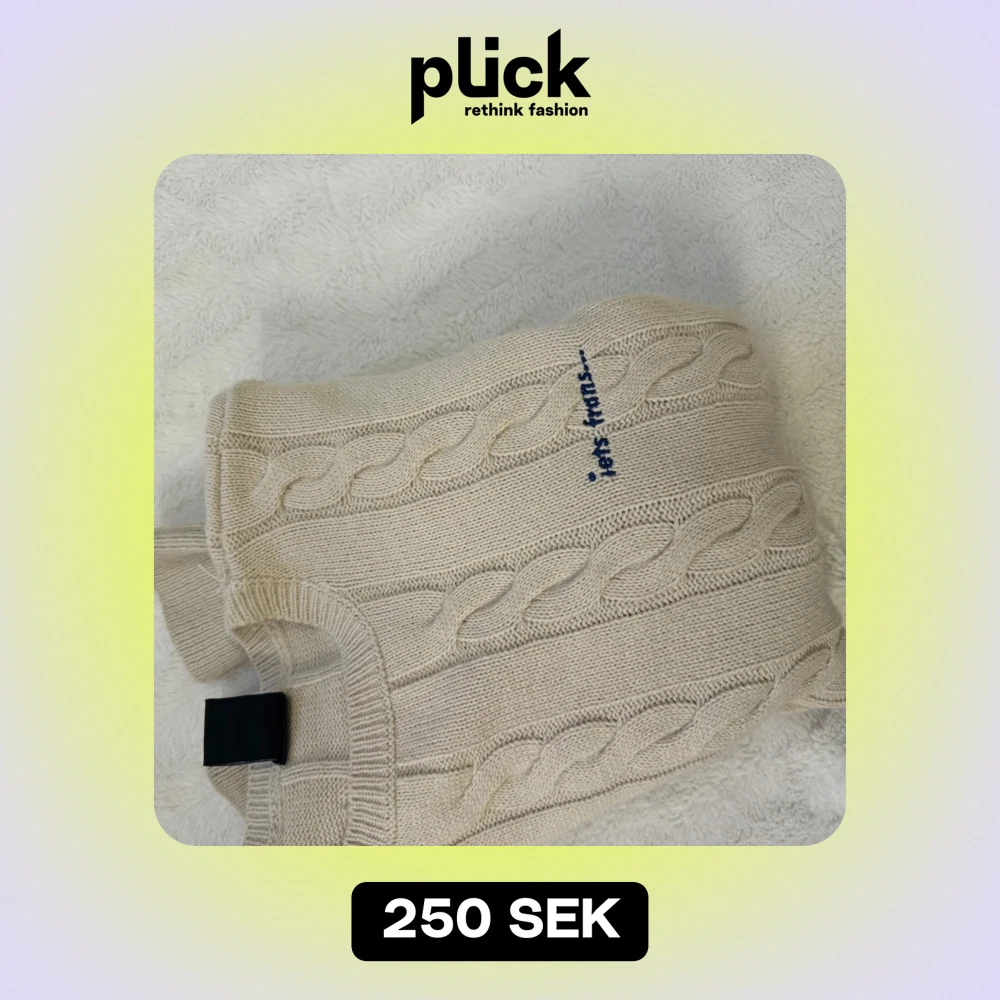 Säljer en fin beige stickad tröja från iets frans i storlek L som är unisex. Nästan aldrig använd och köpt för 600kr