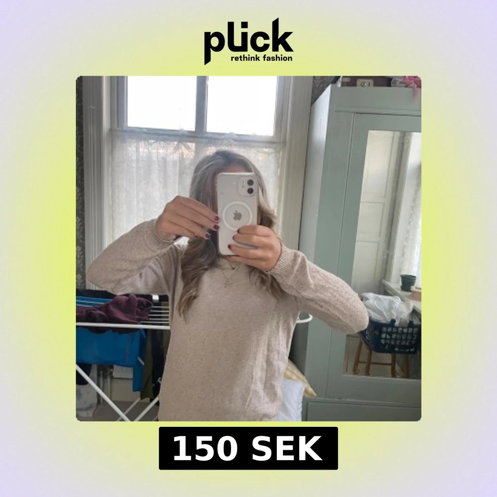 Mysig beige stickad tröja från Jacqueline de Yong i storlek M. Tröjan har rund halsringning, ribbade muddar och lång ärm. Den sitter som en S