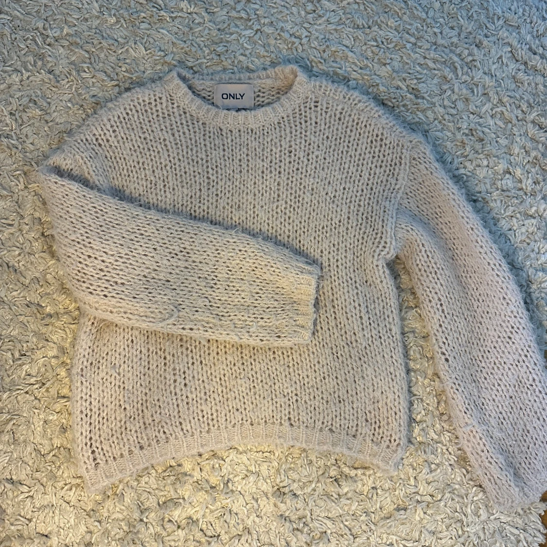 Mysig beige stickad tröja från ONLY. Tröjan har en rund hals och långa ärmar men är lite för kort för mig. 💖