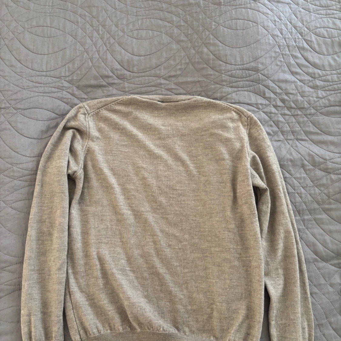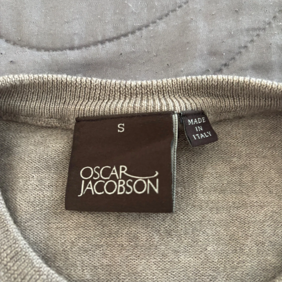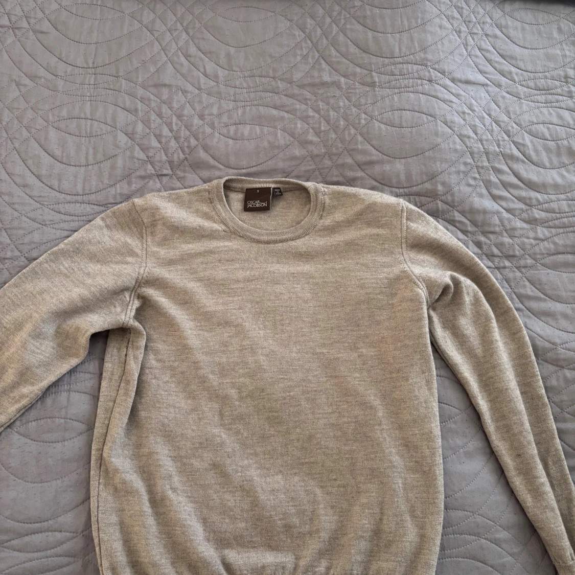 Säljer en stilren beige stickad tröja från Oscar Jacobson. Tröjan har rund halsringning och långa ärmar, perfekt för lager-på-lager. Tillverkad i Italien och känns riktigt mjuk och skön mot huden. Om du har storlek xs kommer den passa klockrent men om du har s kan den vara förliten. Använd cirka 10 gånger.