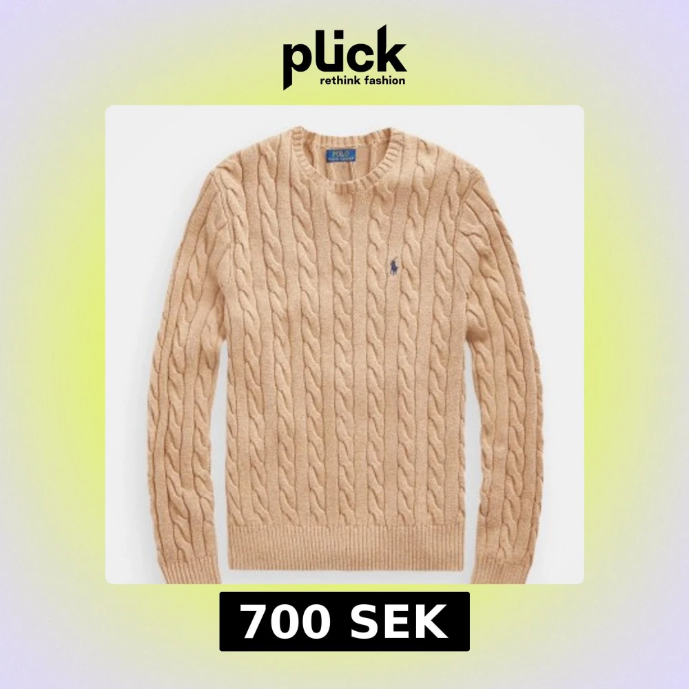 Säljer en snygg beige stickad tröja från Polo Ralph Lauren med kabelstickat mönster och den klassiska loggan på bröstet. Tröjan har långa ärmar och rund halsringning. OBS: tröjans märke är vitt, och lite annolrunda beige som man ser på bild 2. Skriv för fler bilder🙏🏻