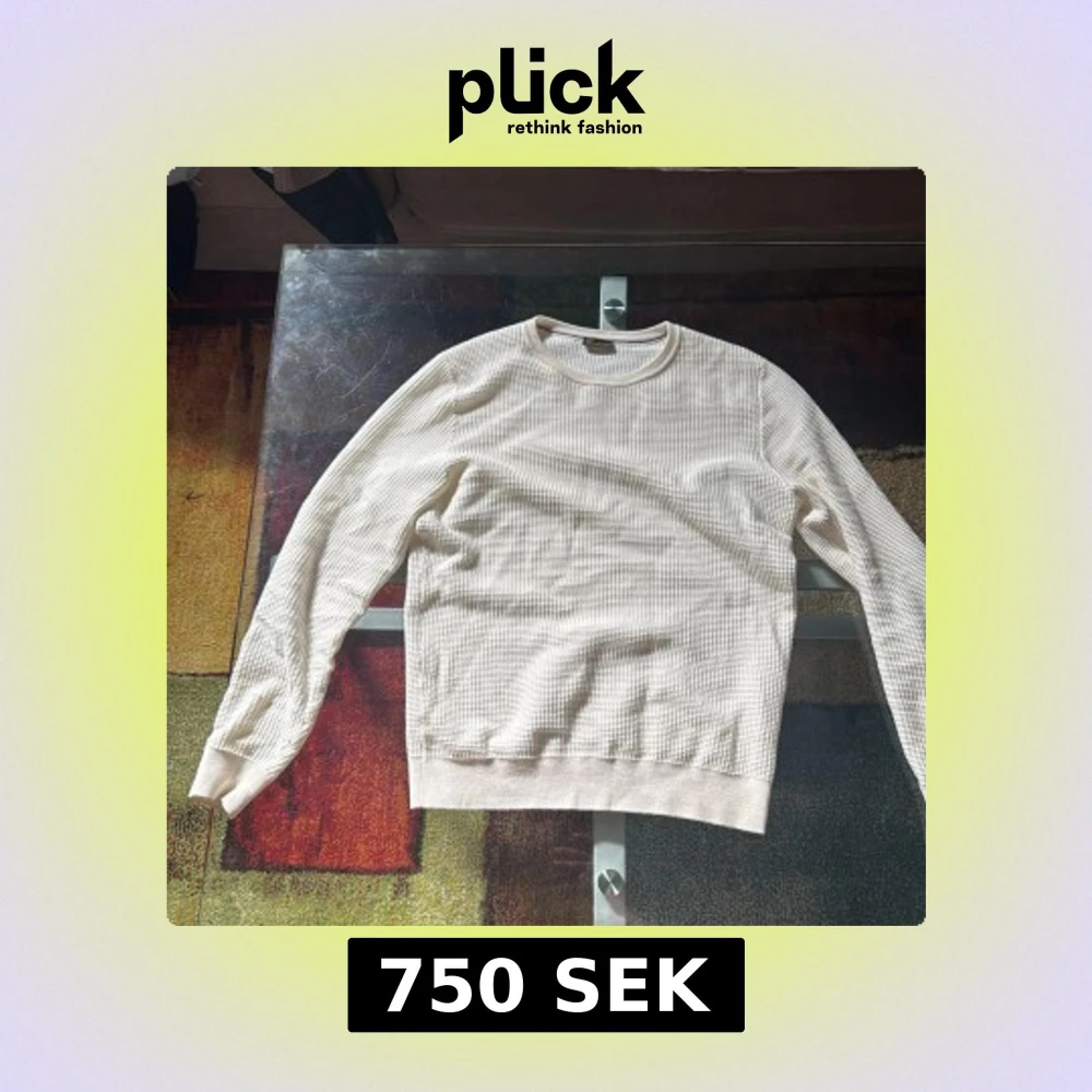 Säljer en beige stickad tröja från Stenströms med rund halsringning och diskret ribbade muddar. Tröjan har ett snyggt rutigt stickmönster och är långärmad, perfekt för lager-på-lager under kyliga dagar.