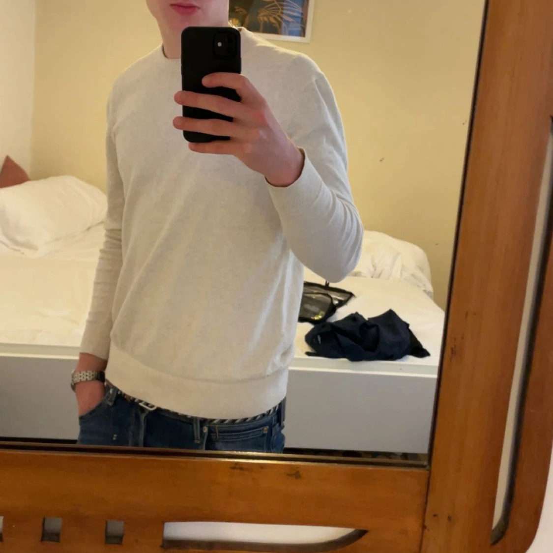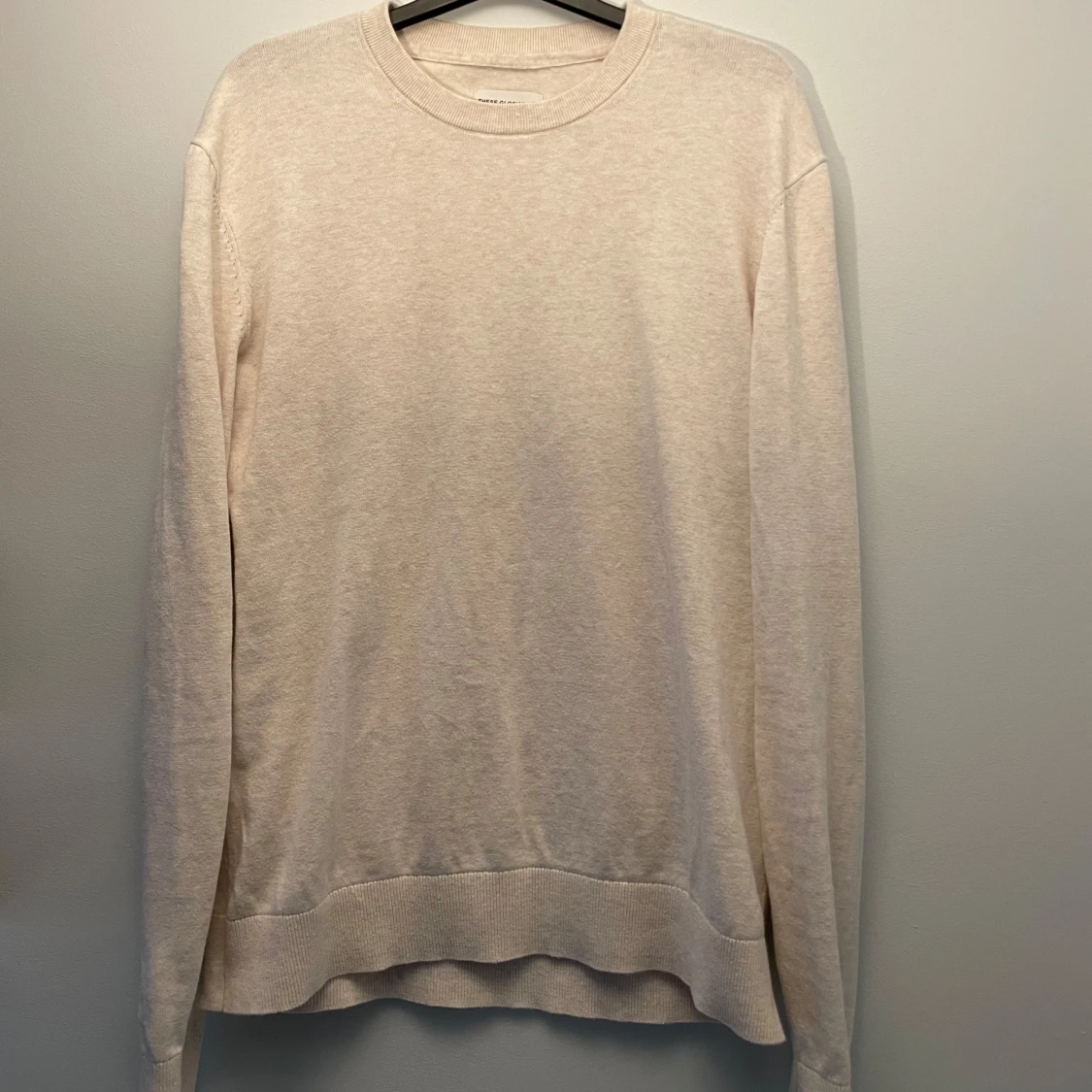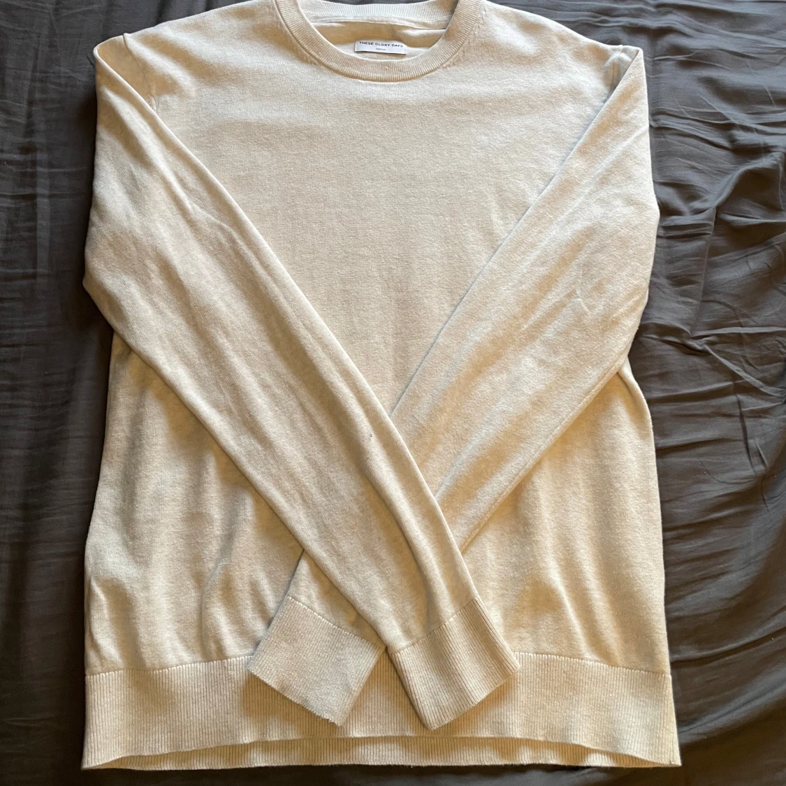 Säljer en stilren beige stickad tröja från These Glory Days med rund hals och långa ärmar| Tröjan har ribbade muddar vid ärmslut och nederkant, perfekt för dig som gillar enkel och clean look| Tröjan är knappt använd| Priset är ej hugget i sten | Hör av dig vid funderingar!