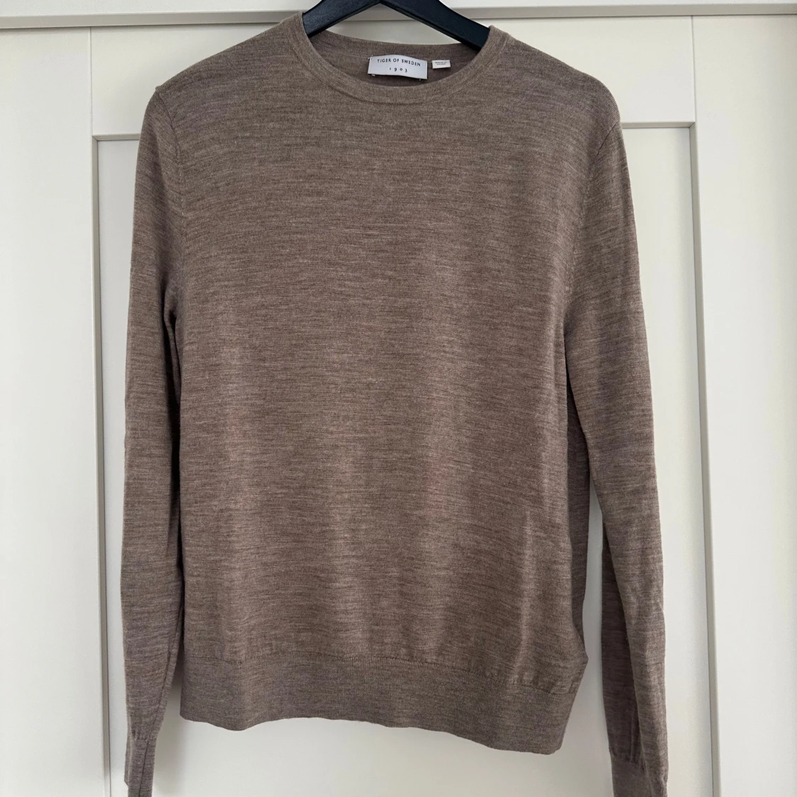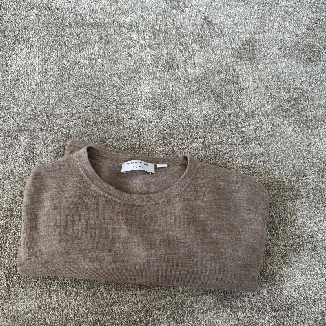 Säljer en stilren beige stickad tröja från Tiger or Sweden. Tröjan har rund halsringning och långa ärmar. Perfekt för lager-på-lager. Tröjan är i nyskick och har endast prövats. Nypris ligger på 1499 mitt pris 399.