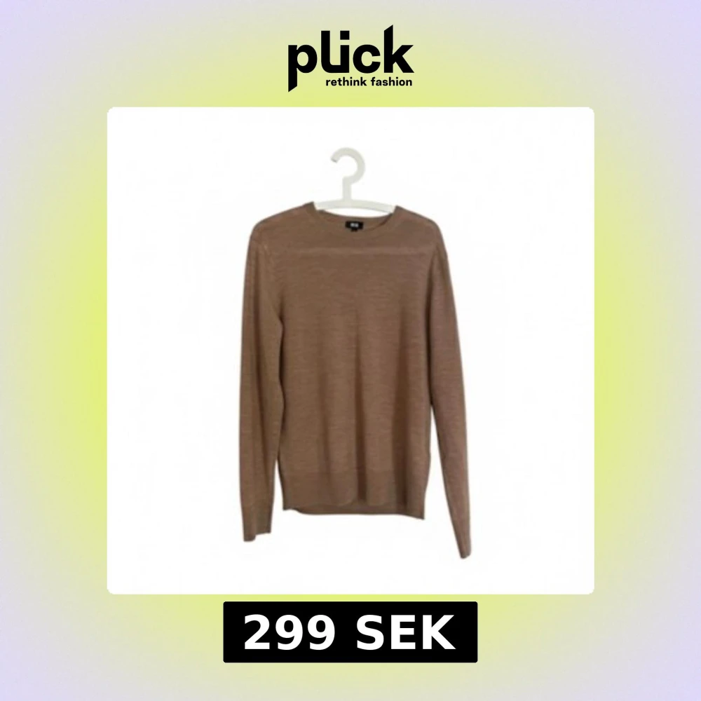Säljer en stilren beige stickad tröja från Uniqlo. Tröjan har rund halsringning och långa ärmar. Perfekt för lager-på-lager och enkel att matcha med olika outfits. Materialet är merinoull!