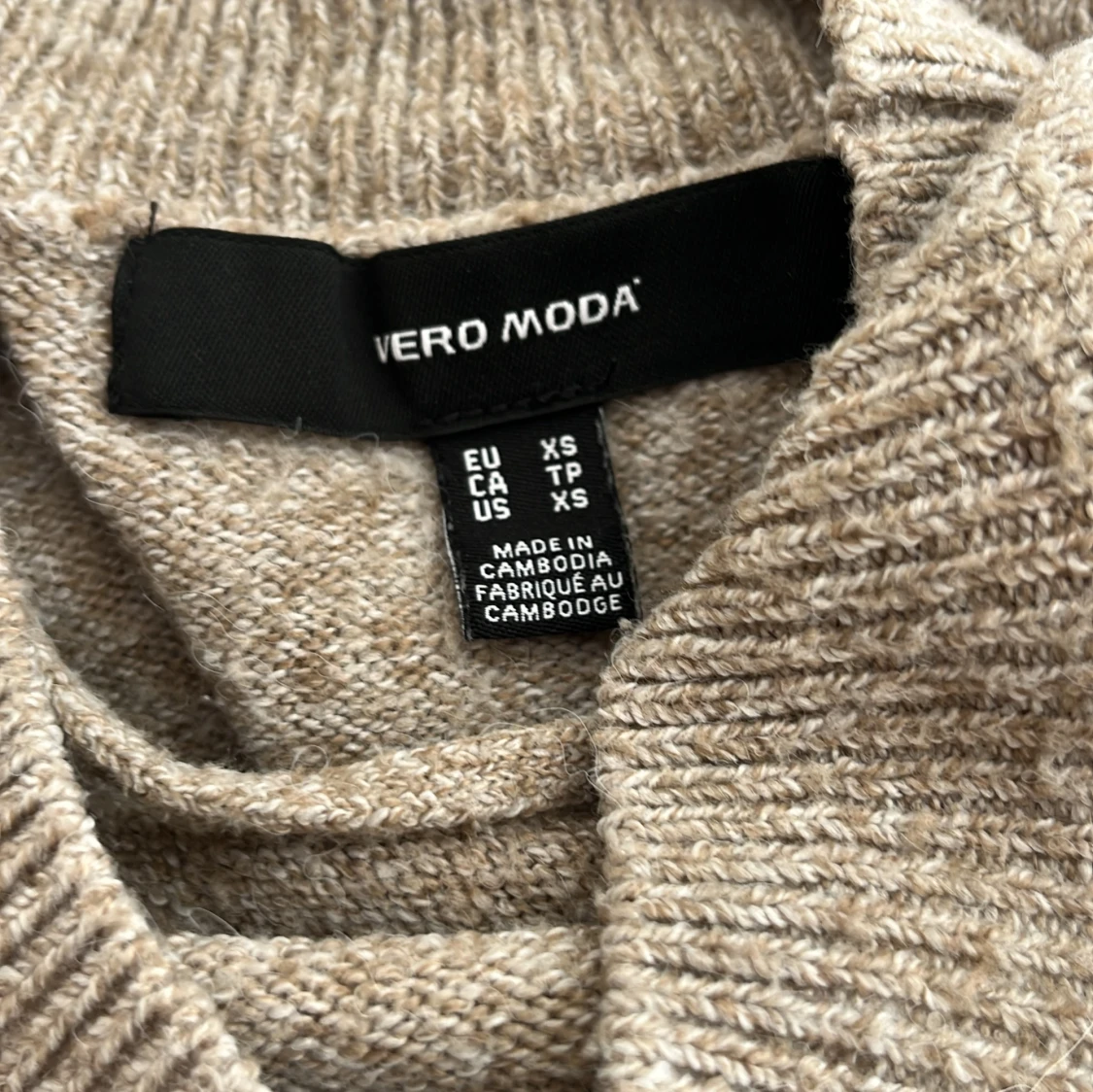 Mysig beige stickad tröja från Vero Moda i storlek XS. Tröjan har en klassisk rund halsringning, ribbade muddar och är långärmad. Klicka gärna på ”köp nu”!