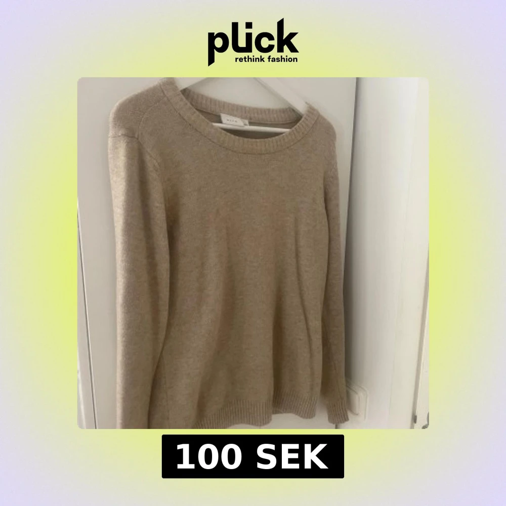 Säljer en beige stickad tröja från VILA. Tröjan har rund halsringning och långa ärmar, perfekt för lager-på-lager. Enkel och stilren design som passar till det mesta.