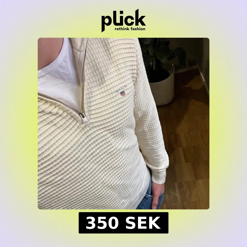 Säljer en beige stickad tröja från GANT med halv dragkedja och diskret logga på bröstet. Tröjan har lång ärm, ribbade muddar och en strukturerad yta som ger en snygg look. Perfekt för lager-på-lager och stilrena outfits. Storlek S men passar även M.
