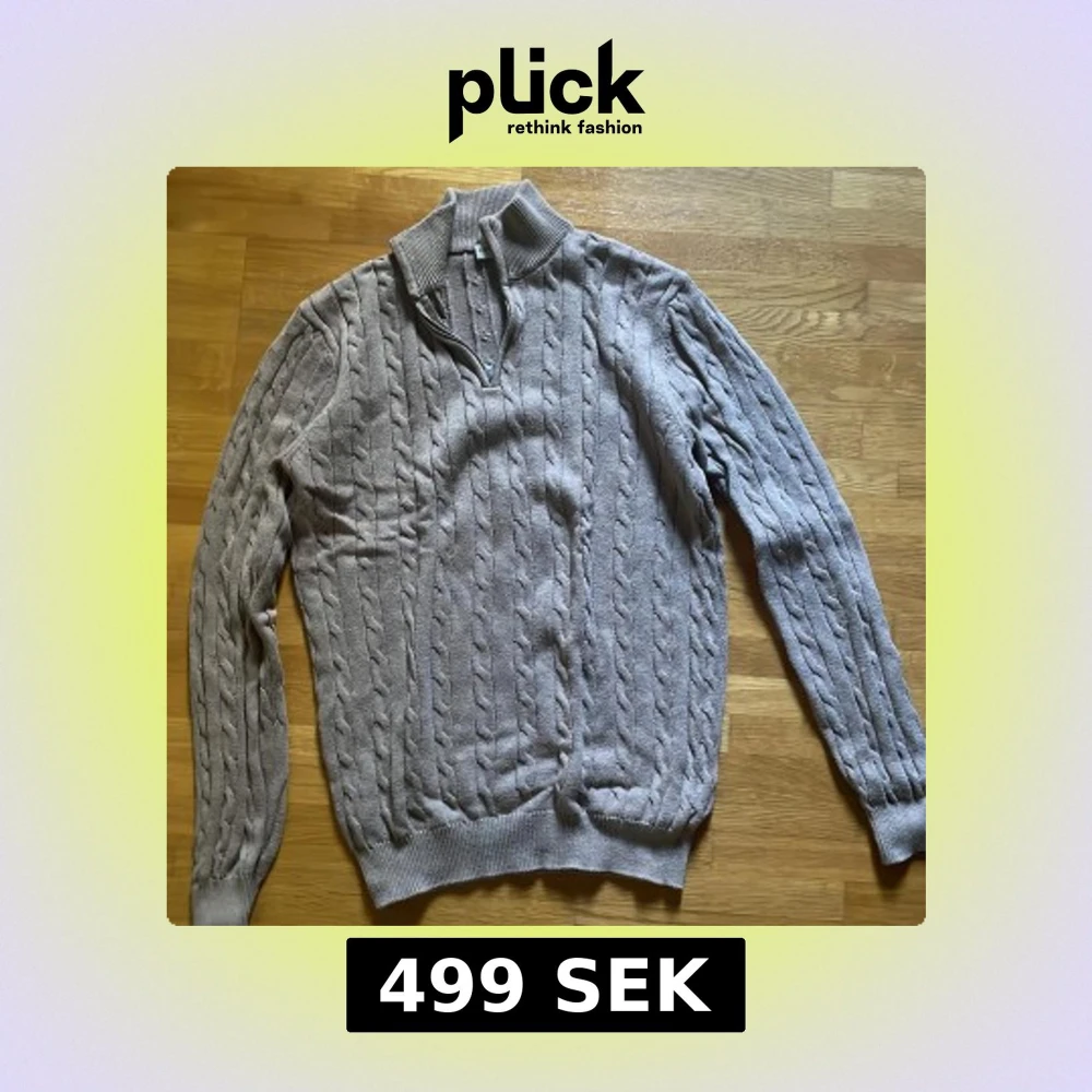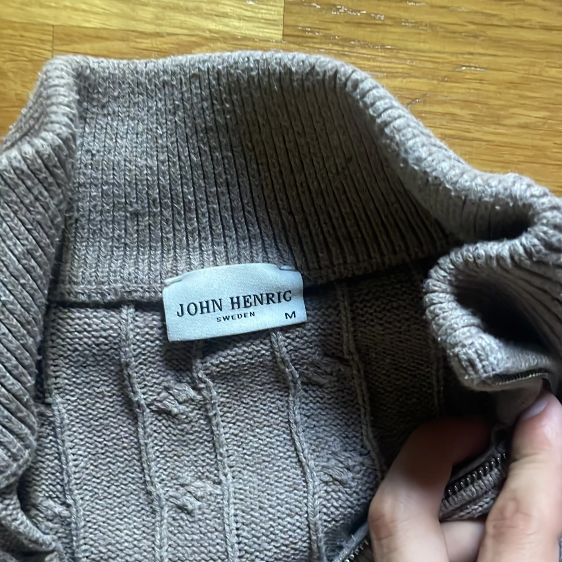Säljer en beige stickad tröja från John Henric i storlek M. Tröjan har kabelstickat mönster, ribbad krage och en snygg half zip-dragkedja. Perfekt för dig som gillar klassisk stil med en modern twist. Långärmad och riktigt skön att bära under kyliga dagar.
