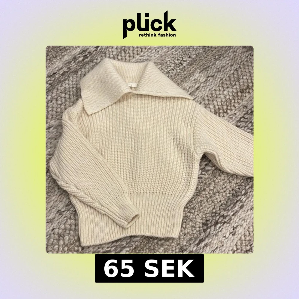 Säljer en chunky stickad tröja från H&M i beige/vit med bred krage och ribbade muddar. Långärmad. Storlek XS