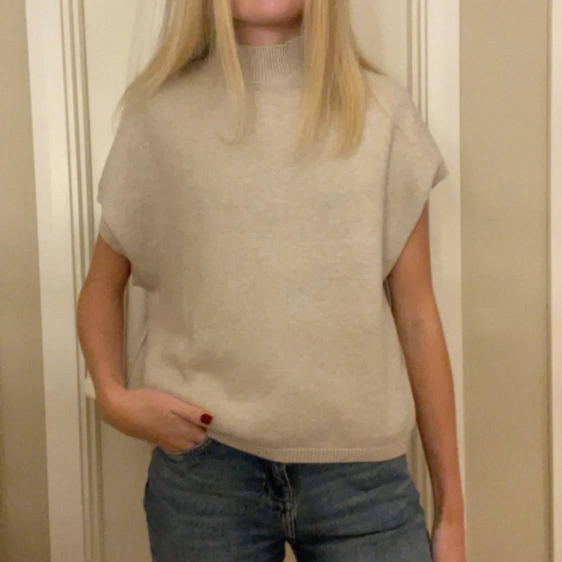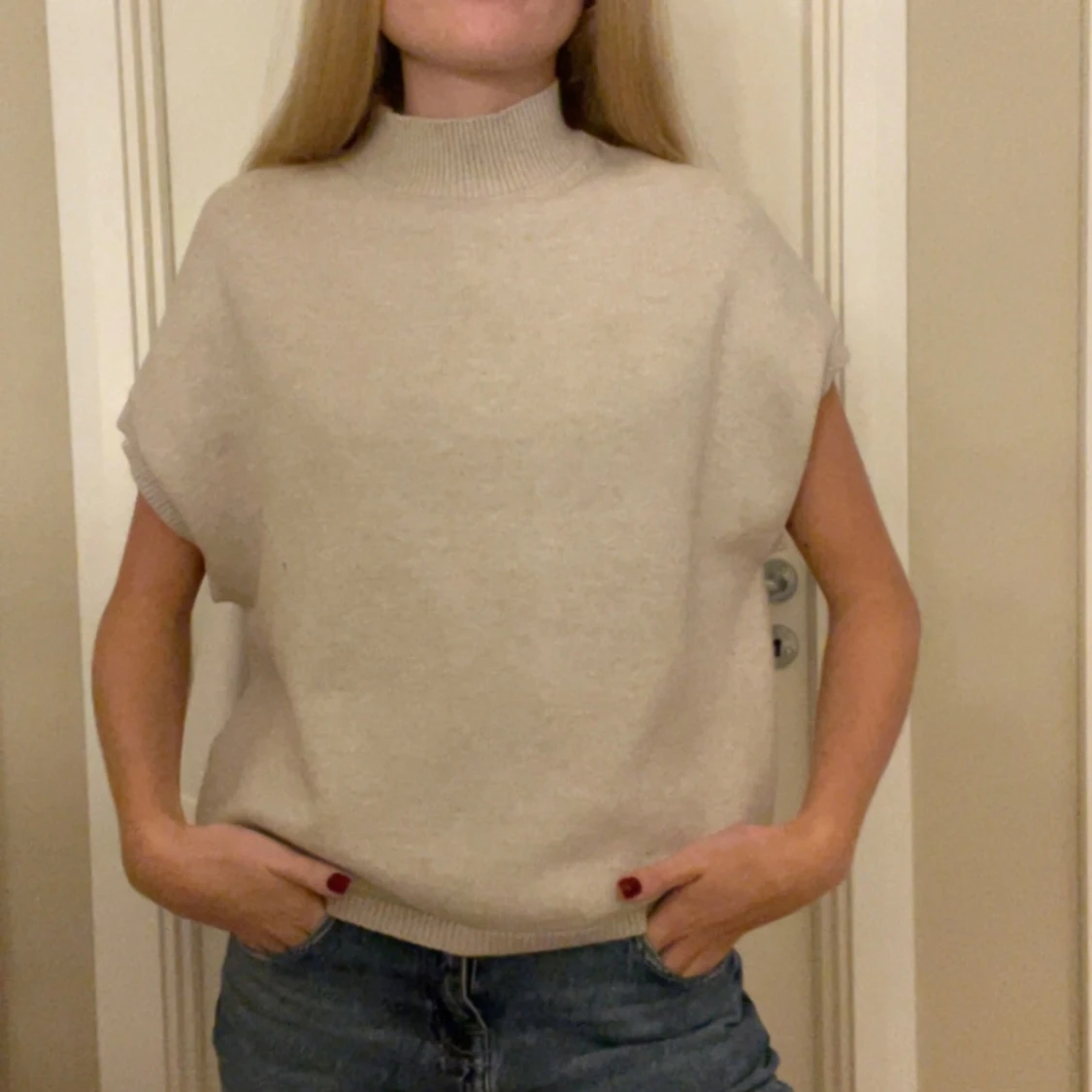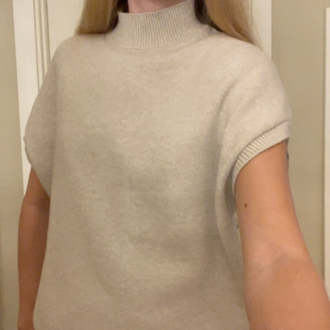 Superfin beige stickad tröja med hög krage, perfekt nu till hösten. Toppen skick, inte alls nopprig