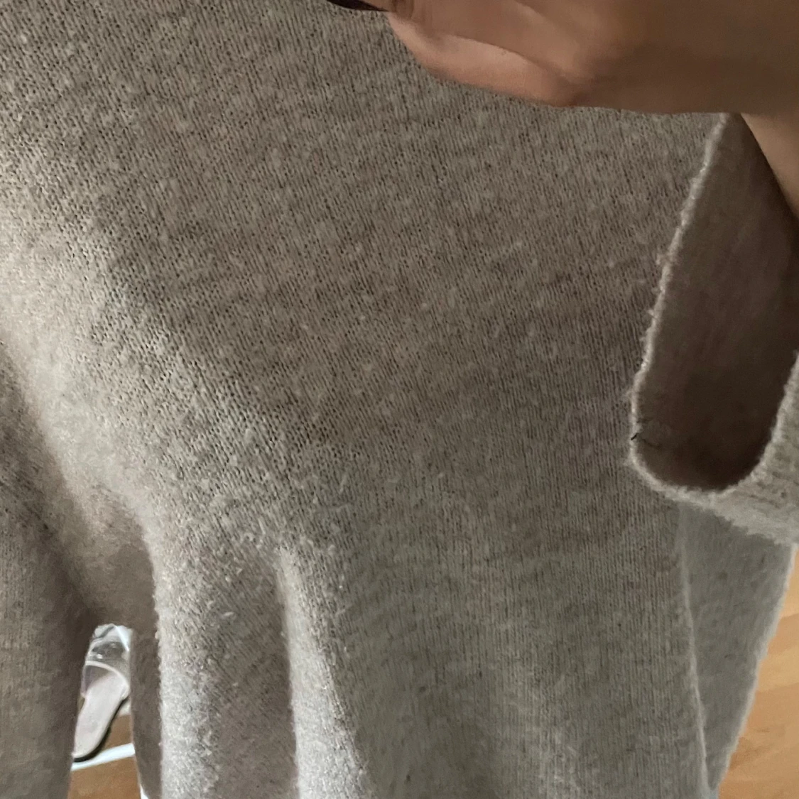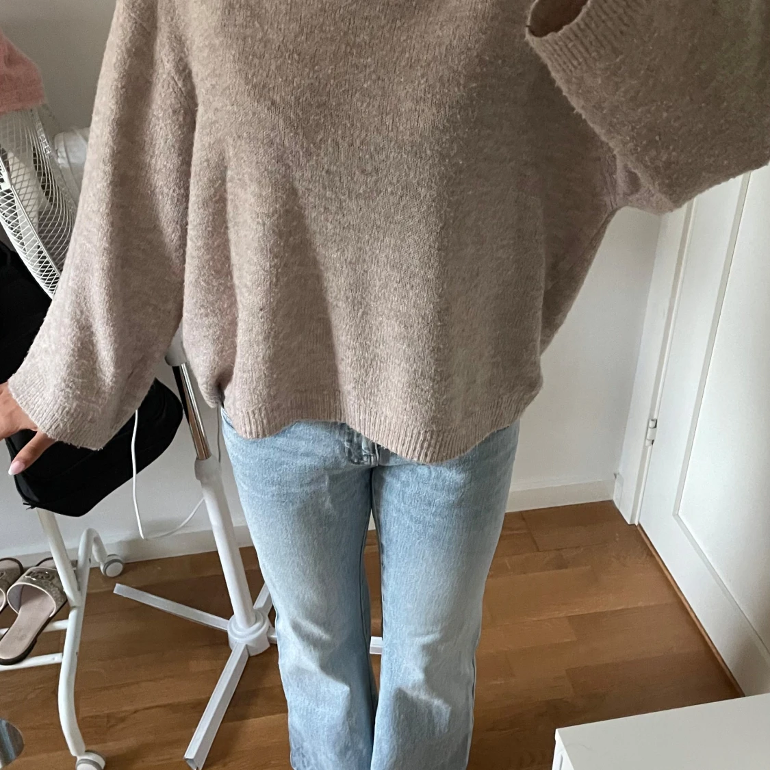 Mysig beige stickad tröja med loose passform och långa ärmar. Tröjan har en enkel design utan mönster och är perfekt för dig som gillar en chill och avslappnad stil. Materialet är mjukt och känns skönt mot huden, perfekt att slänga på sig när det är lite kyligt ute.