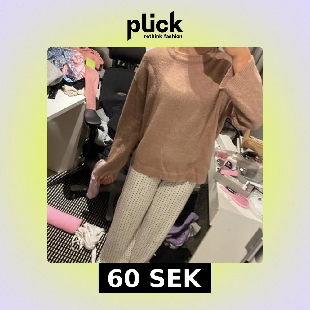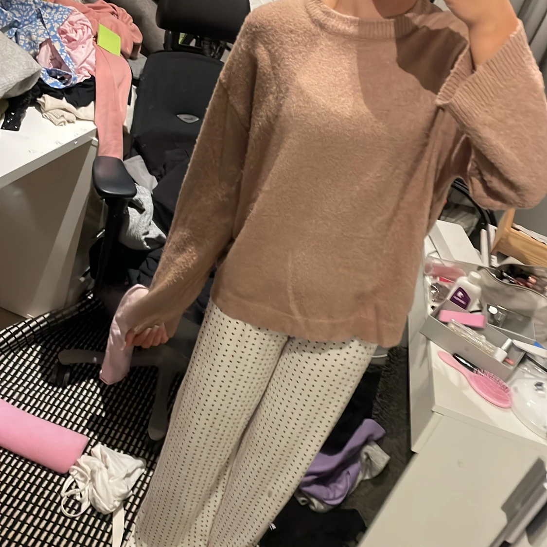 Mysig beige stickad tröja med avslappnad, loose passform och långa ärmar. Tröjan har en enkel design med ribbade muddar vid halsringning och ärmslut. Perfekt för dig som gillar en chill och stilren look.