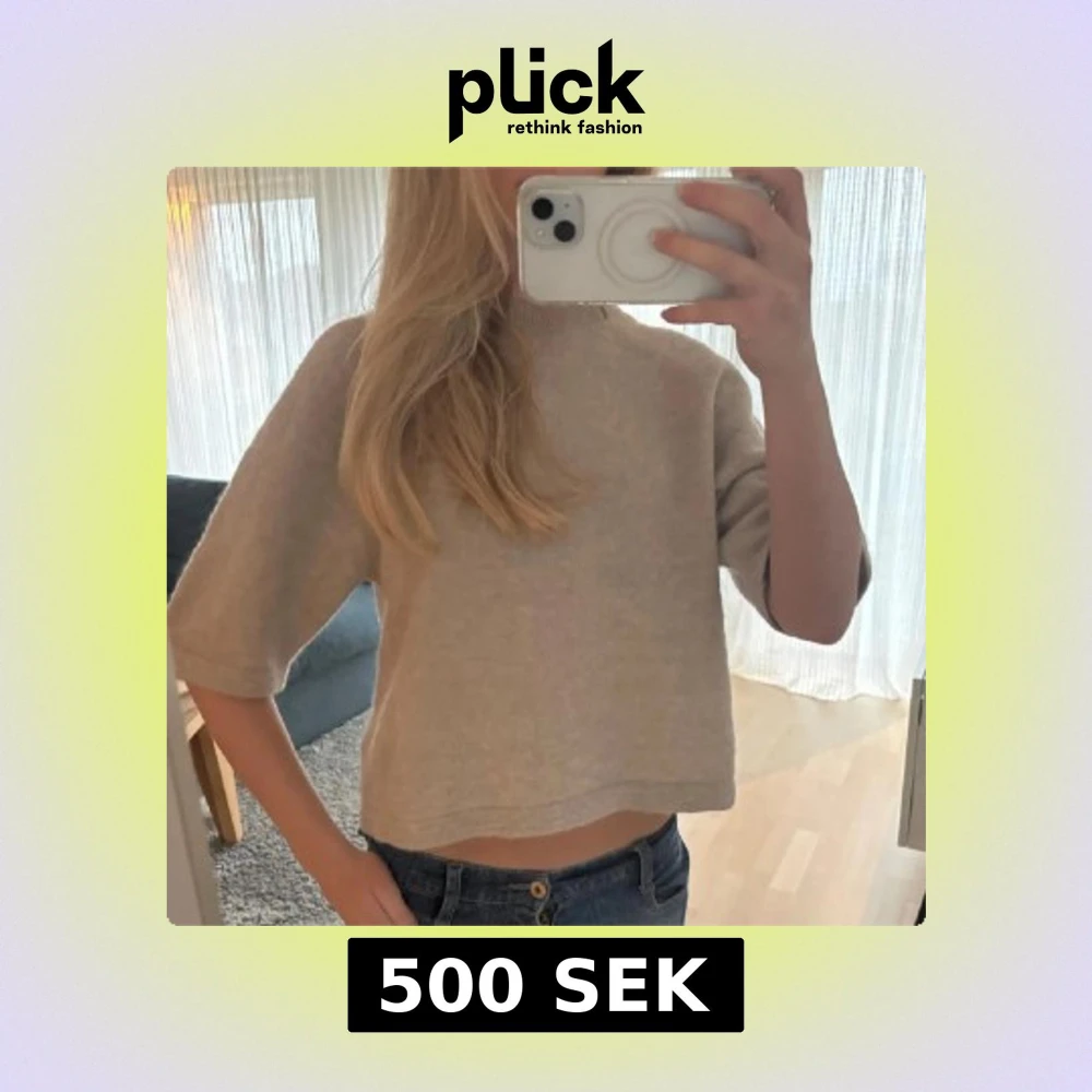 Beige stickad tröja med trekvartsärm
