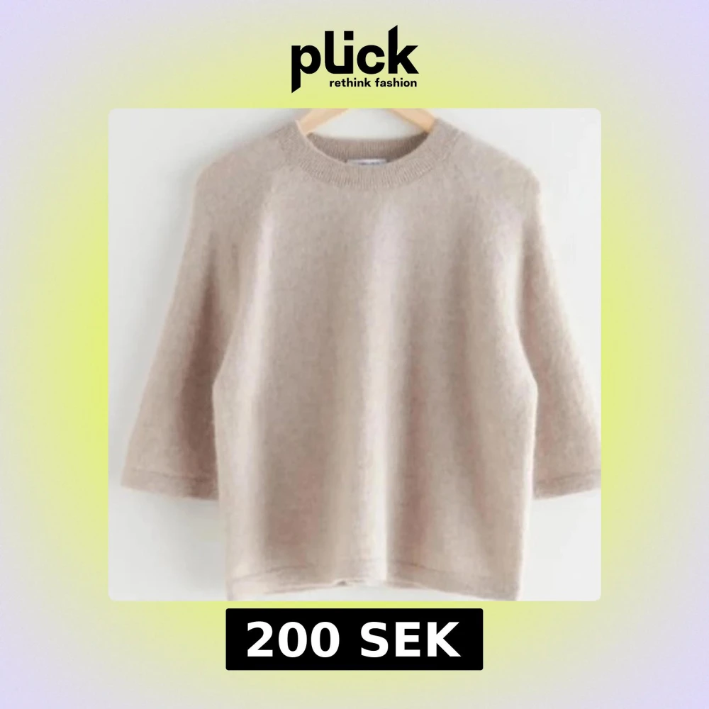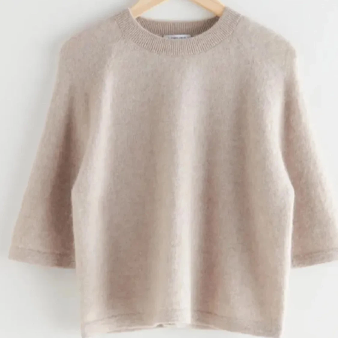 Mysig beige stickad tröja från & other stories med rund halsringning och trekvartsärmar. Tröjan har en enkel och stilren design, perfekt för lager-på-lager och passar till många olika outfits.