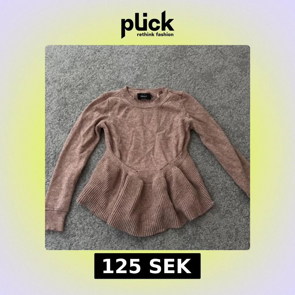 Supersöt beige stickad tröja från ONLY med långa ärmar och volangdetalj nedtill. Tröjan har rund halsringning och ribbade muddar. Perfekt för dig som vill ha något både bekvämt och snyggt! 🌸💕