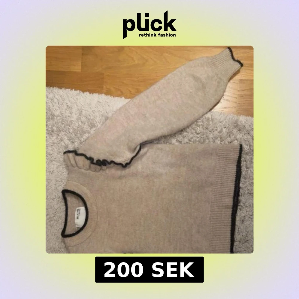 Säljer en beige stickad tröja från Selected Femme i storlek S. Tröjan har svarta detaljer vid halsringning, ärmslut och nederkant samt en snygg volang längs axeln. Perfekt för dig som gillar stilrena plagg med en twist. Endast använd ett fåtal gånger så den är som ny! Skicka dm ifall ni har fler frågor eller vill ha fler bilder!💓köparen står för frakten! 💓