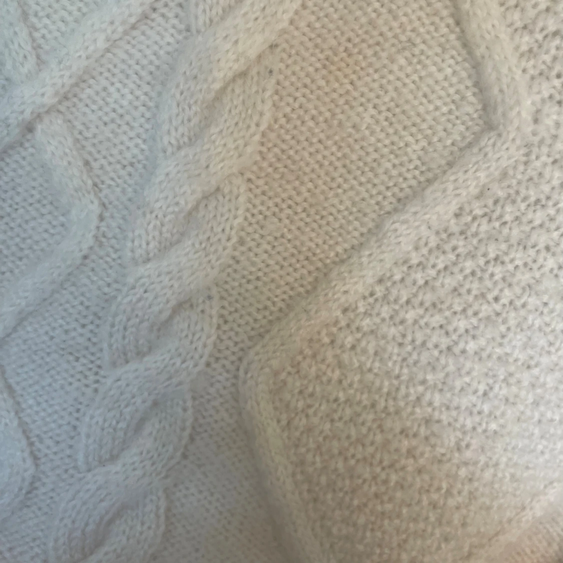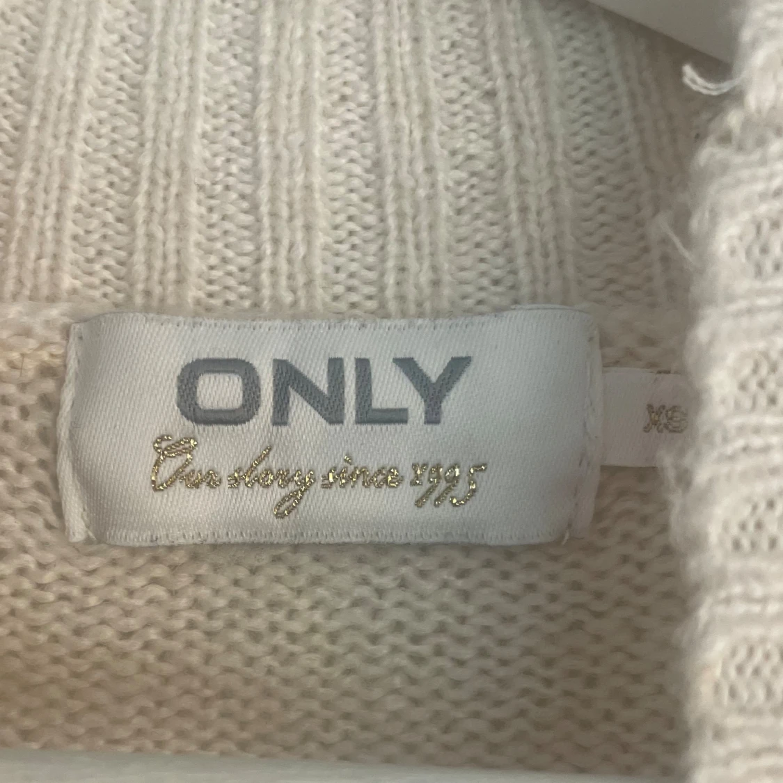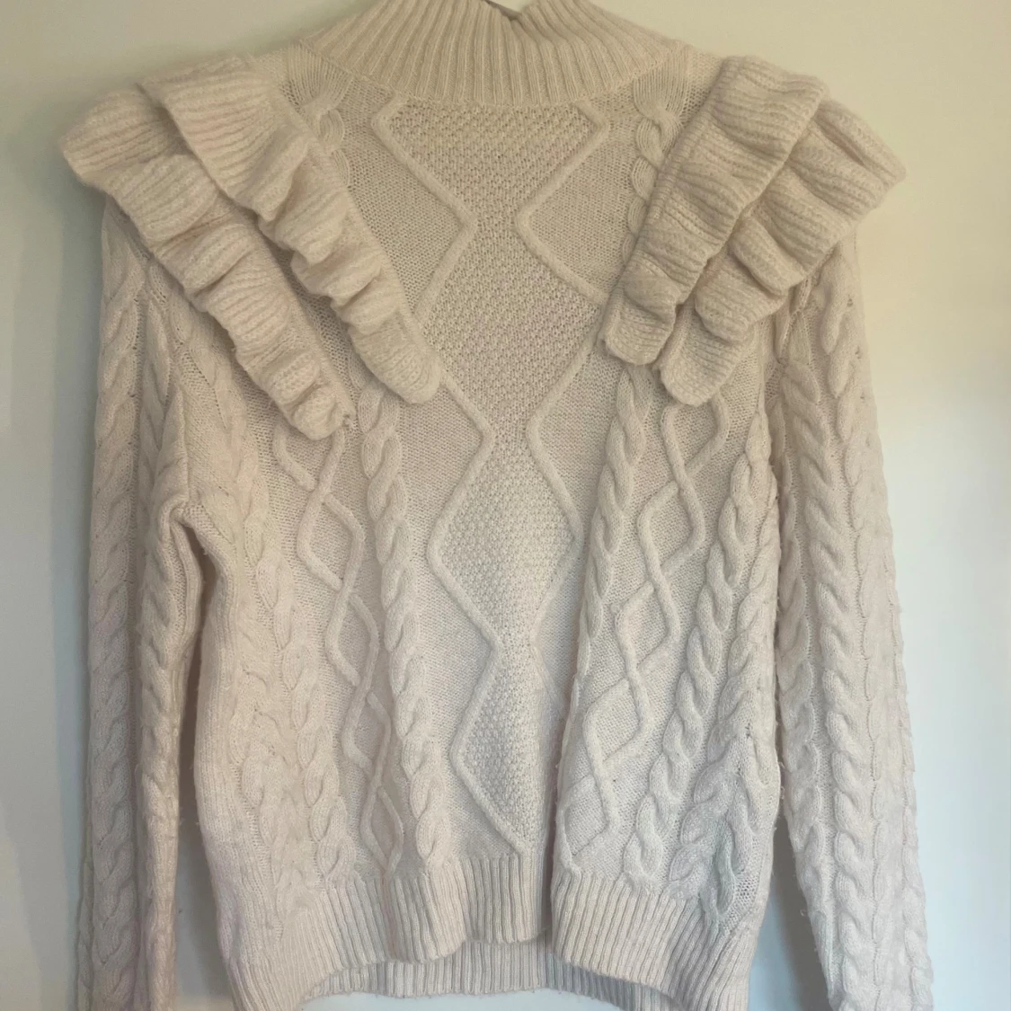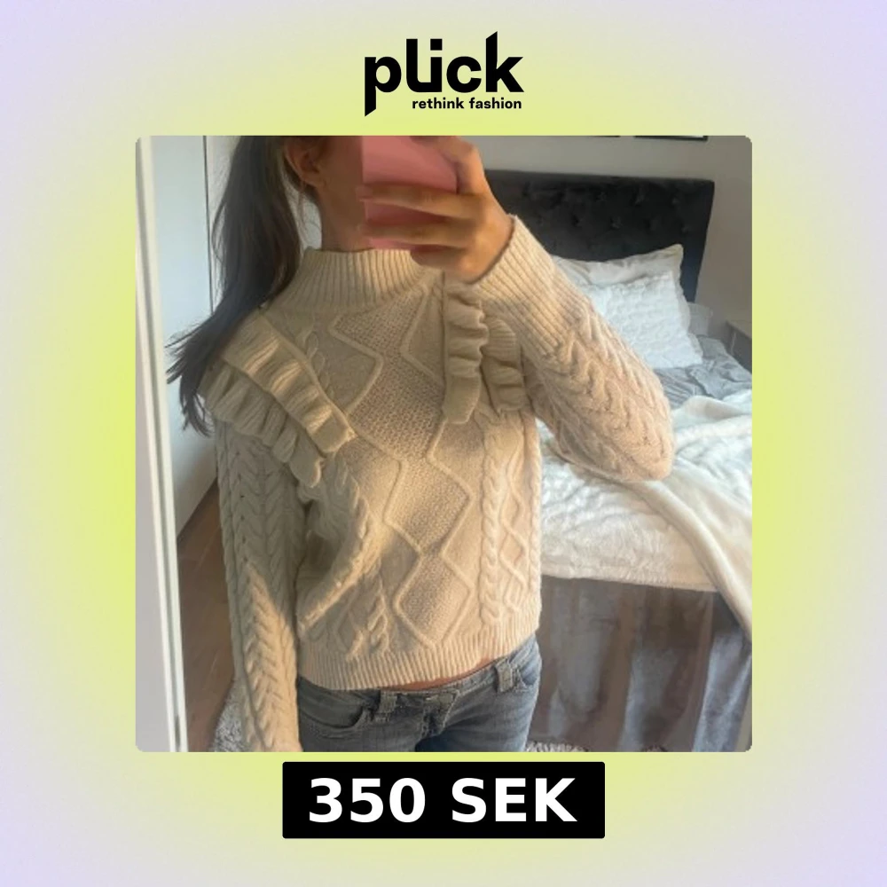 Superfin beige stickad tröja med polo och snygga volangdetaljer över axlarna. Tröjan har ett flätstickat mönster på framsida samt långa ärmar. Perfekt för dig som gillar mysiga och trendiga plagg med extra detaljer.