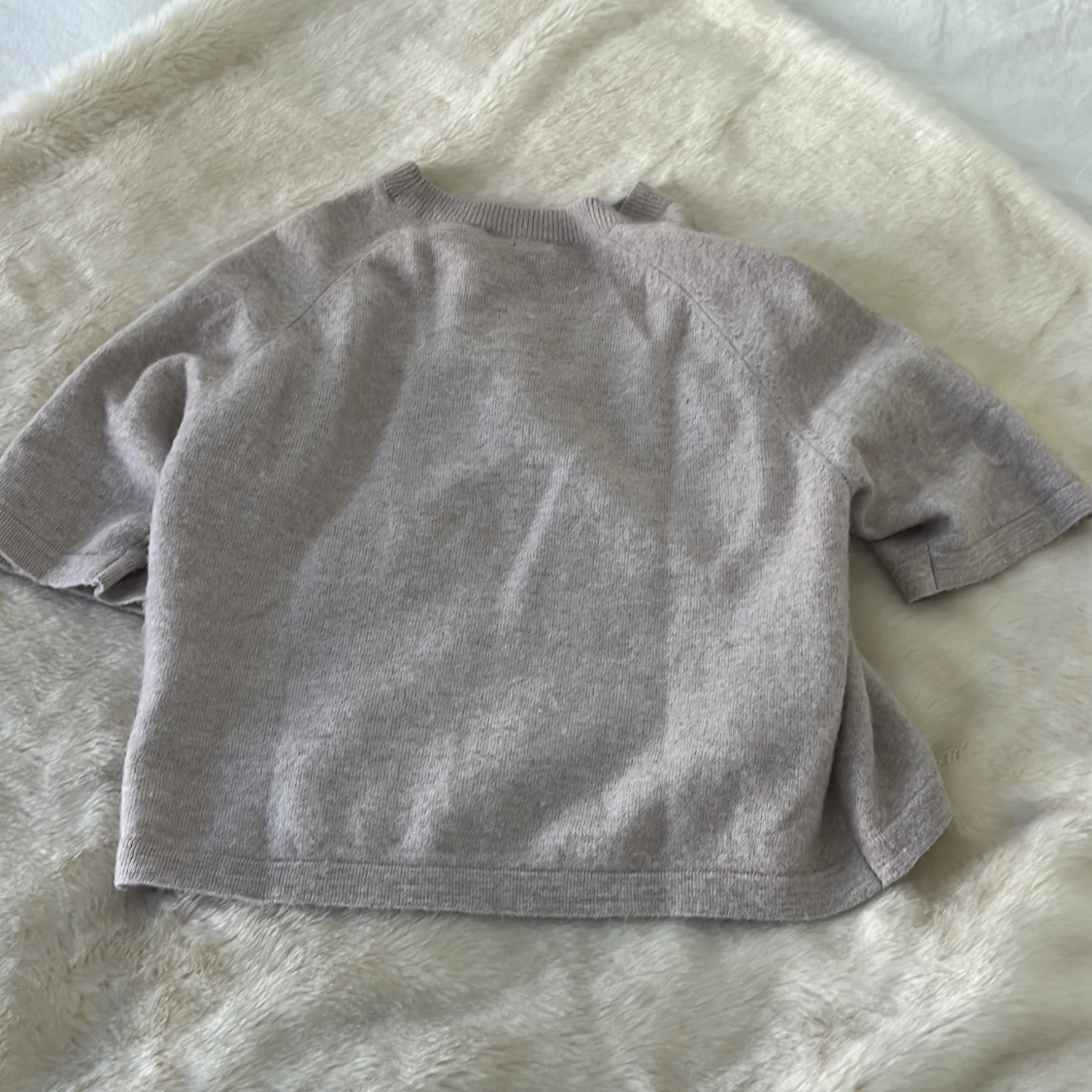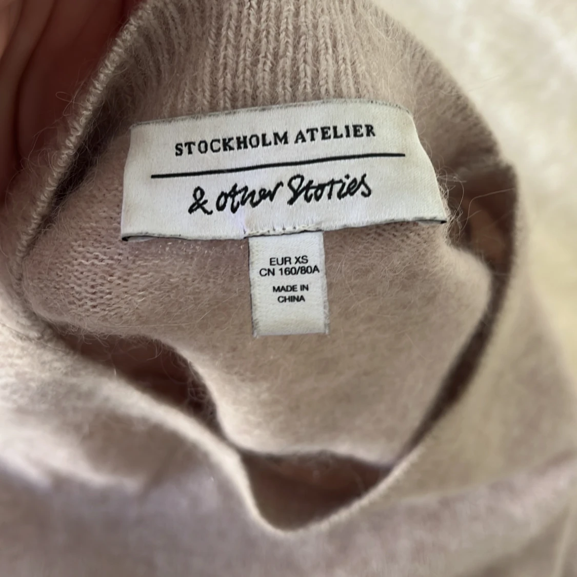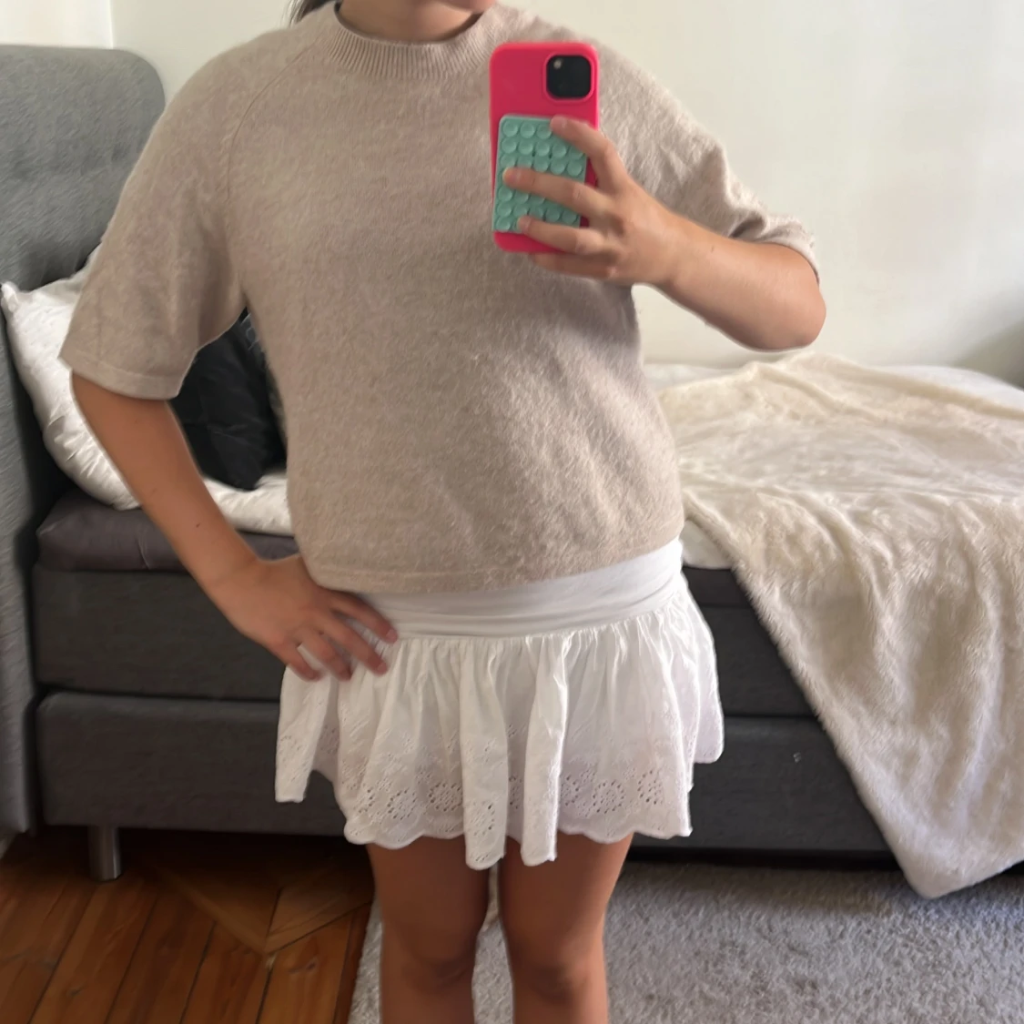 Supermysig beige stickad tröja från & Other Stories. Modellen har korta ärmar, rund hals och loose fit. Perfekt till både jeans och kjol, och den mjuka stickade känslan gör den extra skön. Passar dig som gillar enkel och clean stil.