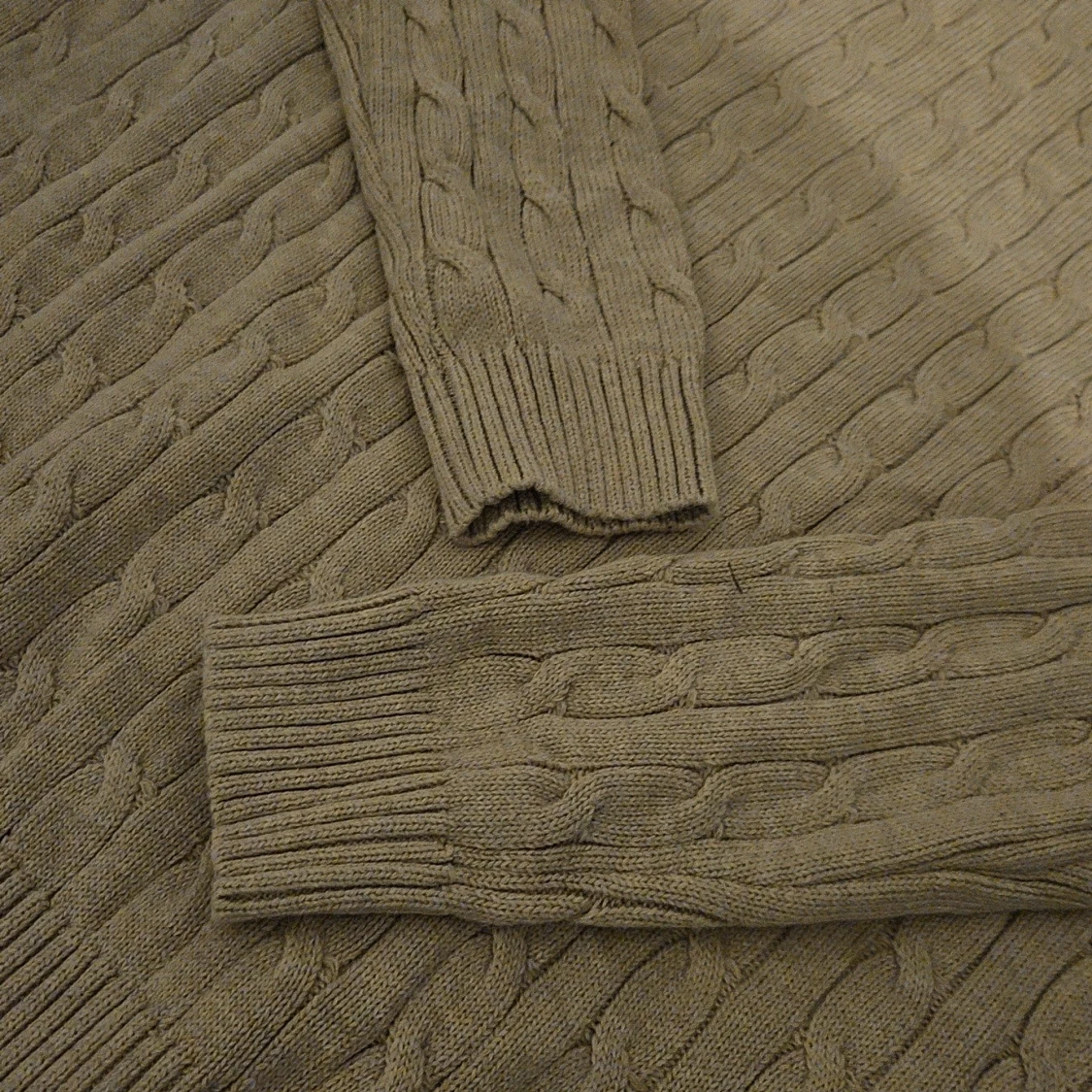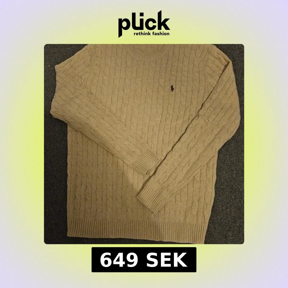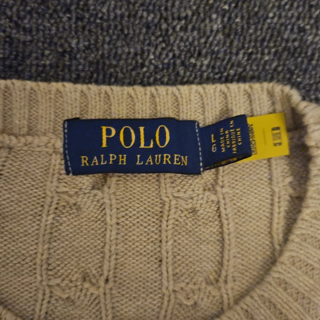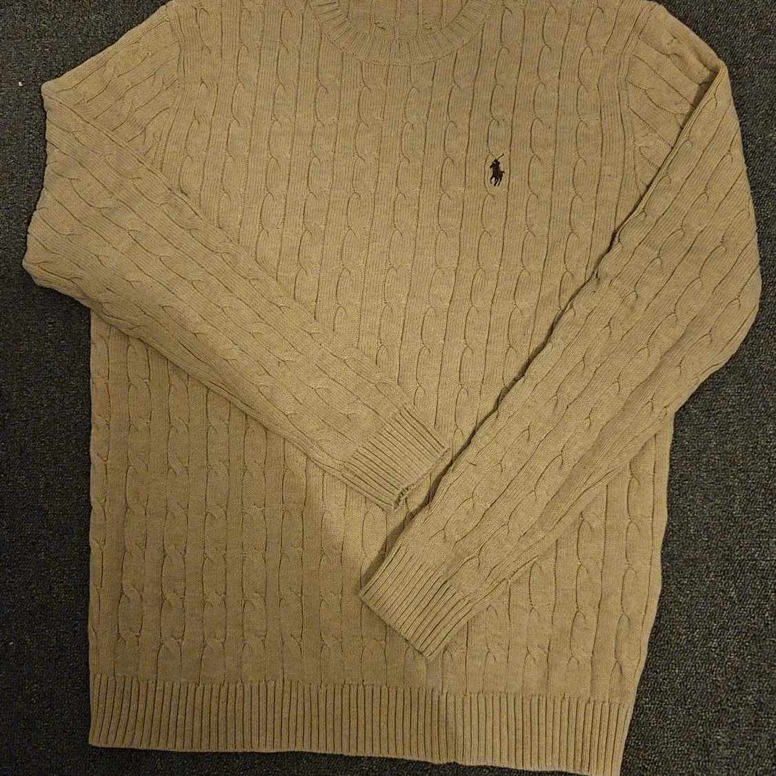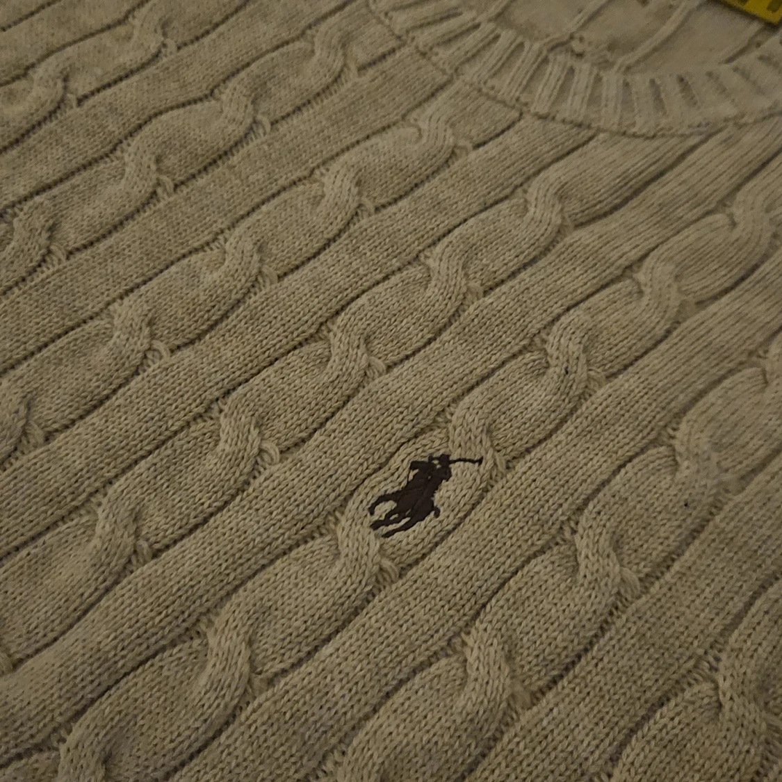 Kabelstickad beige tröja från Polo Ralph Lauren med klassisk rund hals och broderad logga på bröstet. Tröjan är långärmad och har ribbade muddar vid ärmslut och nederkant. Perfekt för dig som gillar en clean och tidlös stil.
