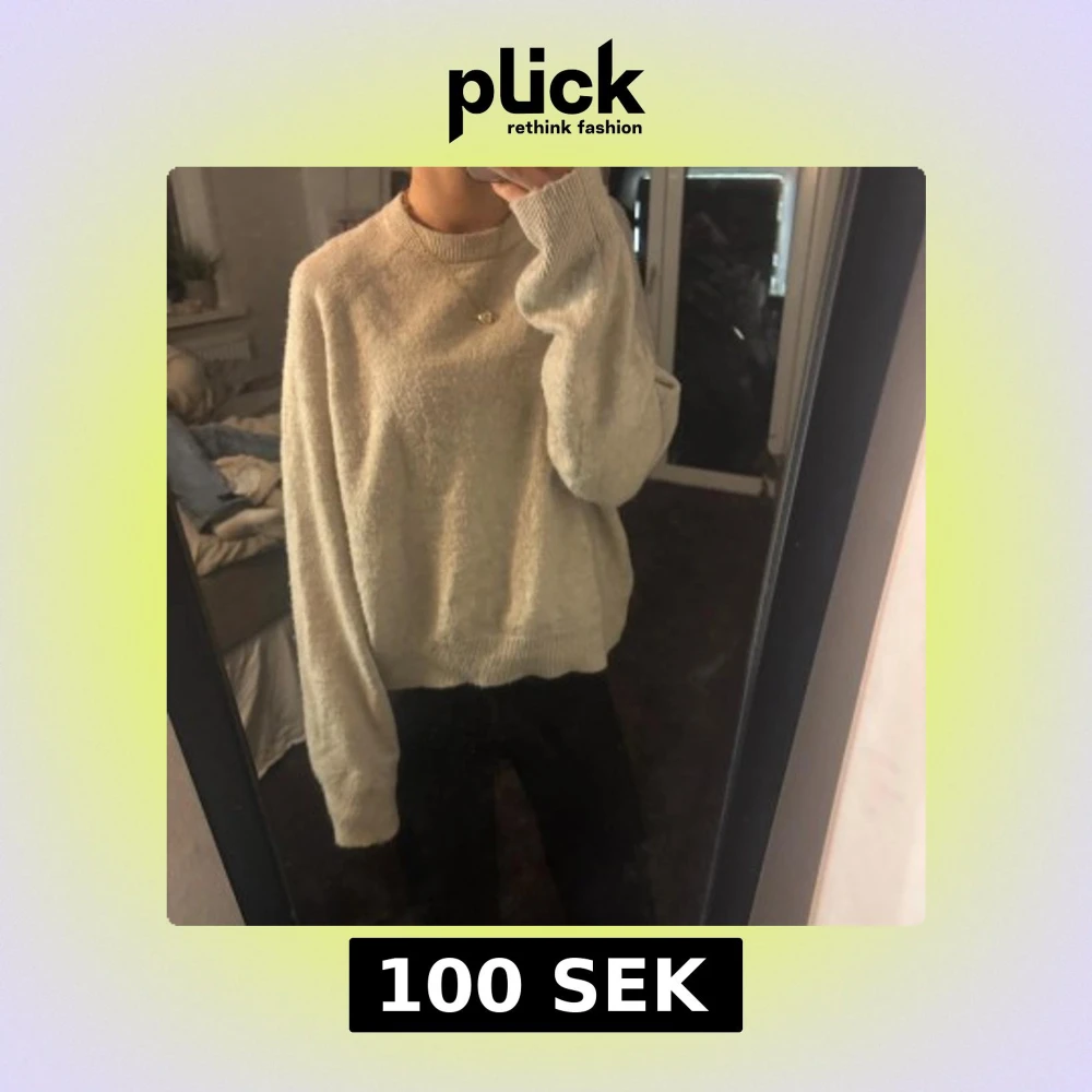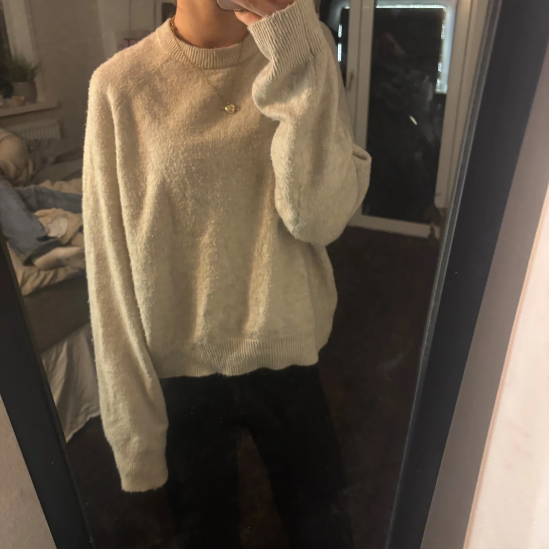 Mysig beige stickad tröja med avslappnad passform och långa ärmar. Tröjan har ribbade muddar vid ärmslut och nederkant, perfekt för lager på lager under kyliga dagar. Enkel och stilren design som passar till allt.